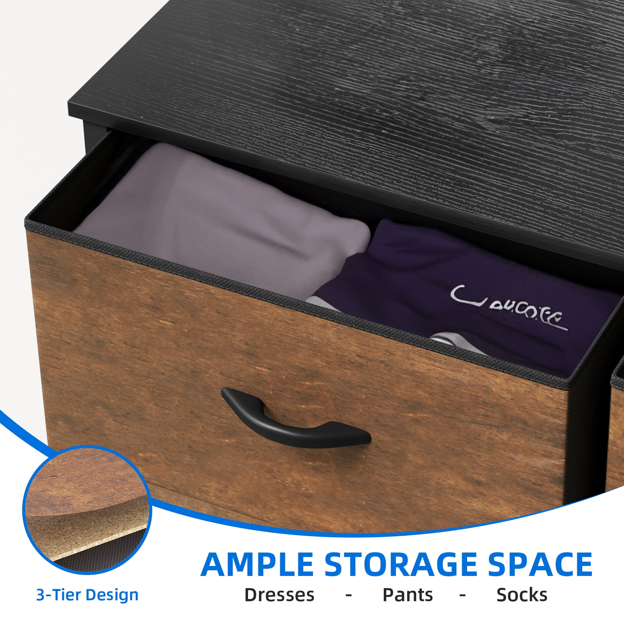 Ample Storage: The Uforic 8-Drawer dresser efficiently organizes clothes, scarves, socks, T-shirts, pants, sunglasses, books, and more; Overall dimensions: 33.7″ L x 11.8″ W x 38.4″ H; Drawer dimensions: 15.5″ L x 11″ W x 8.4″ H. Simple Assembly: Includes detailed instructions and an installation video for easy setup; All necessary parts and accessories are provided; Only a few screws need to be tightened. Premium Fabric: Drawers have high-quality cationic polyester fronts; Breathable, non-woven synthetic fabric covers the sides; Easy maintenance-just wipe with a damp cloth and air dry. Modern Design: Combines rustic brown fabric drawers with a sturdy black metal frame, crossbar design, and wooden top; Suitable for living rooms, bedrooms, hallways, entryways, and closets; Secure to the wall with screws. Sturdy Build: Built with a strong metal frame and an MDF wooden top; Features 8 removable, foldable drawers with easy-pull plastic handles; Supported by 4 adjustable plastic legs to protect floors; The innovative crossbar design enhances stability; Can be wall-mounted with screws.
