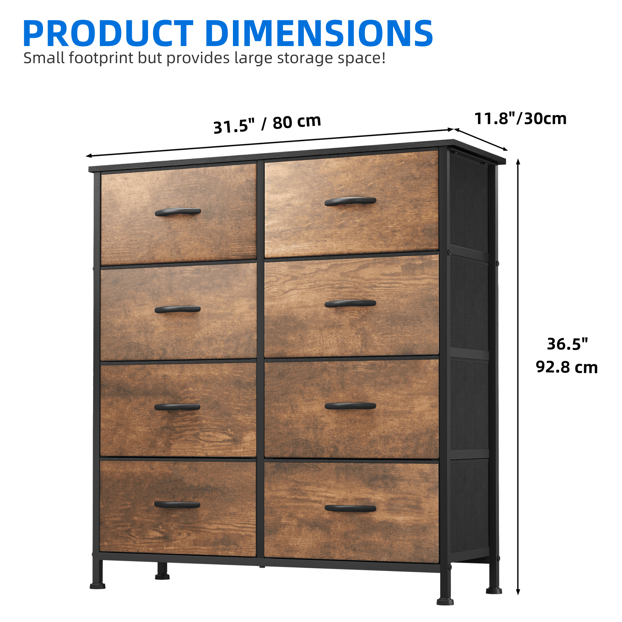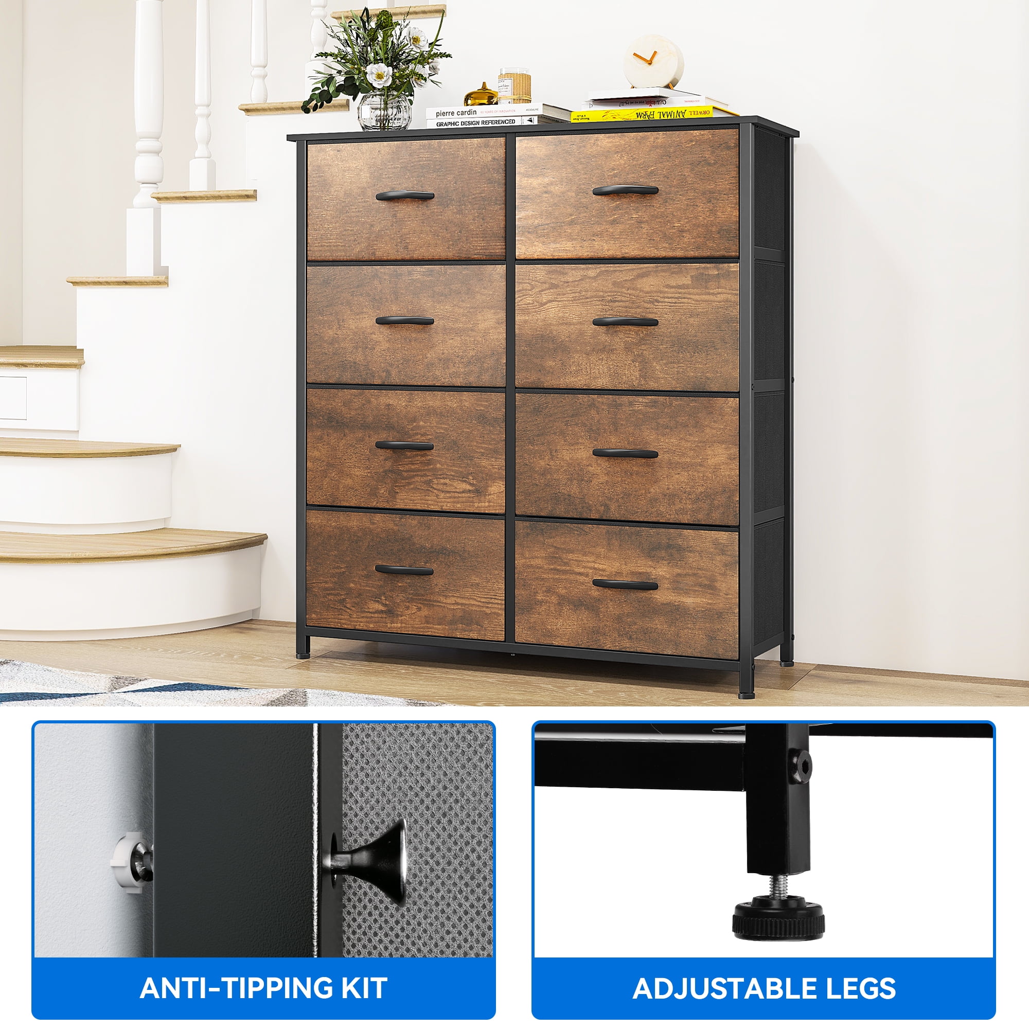 Uforic Rustic Brown 8-Drawer Fabric Dresser, Storage for & Living Room, for Adults & Teens