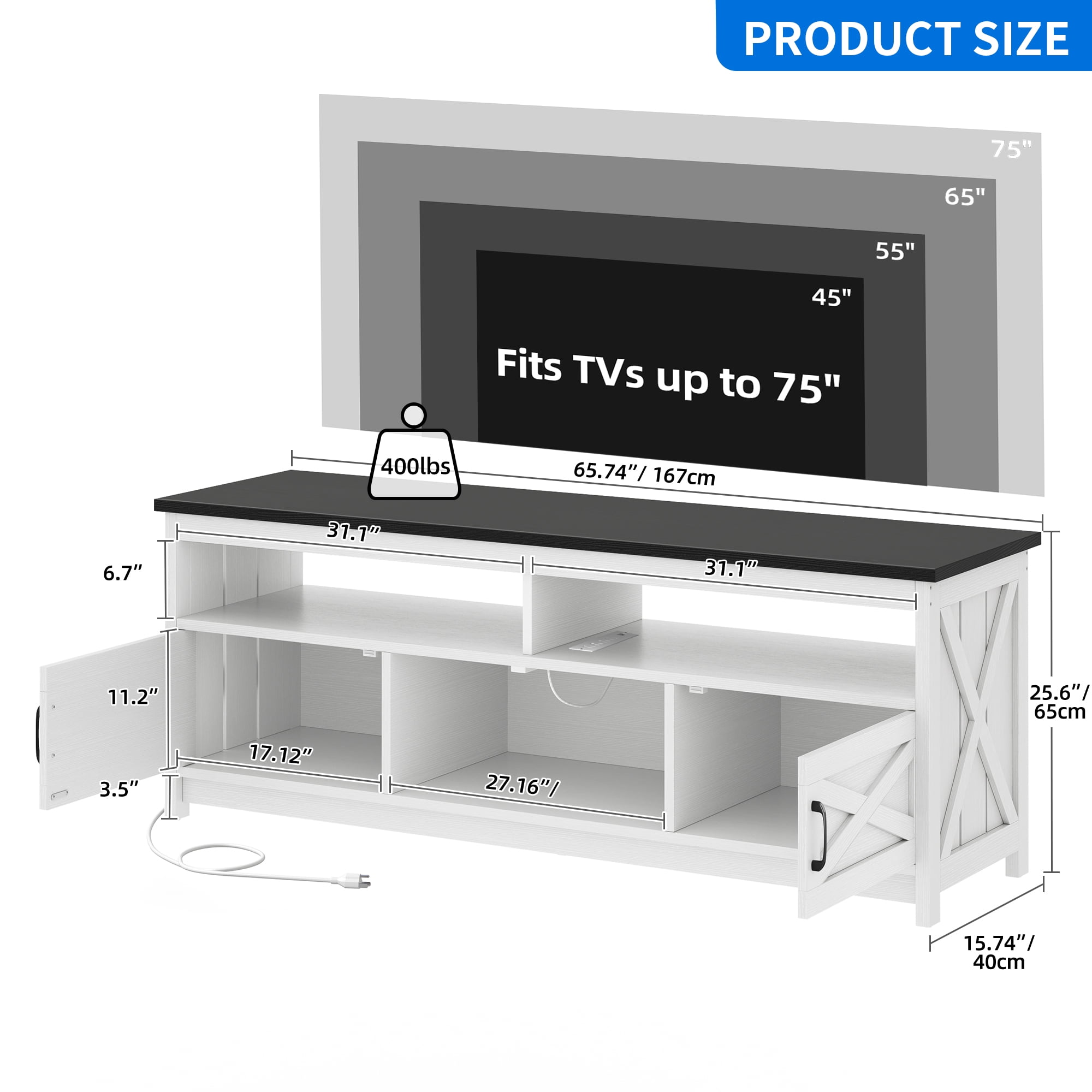 Uforic Farmhouse LED TV Stand with Power Outlet, Media Entertainment Center Console for 75 Inch TV, Black and White