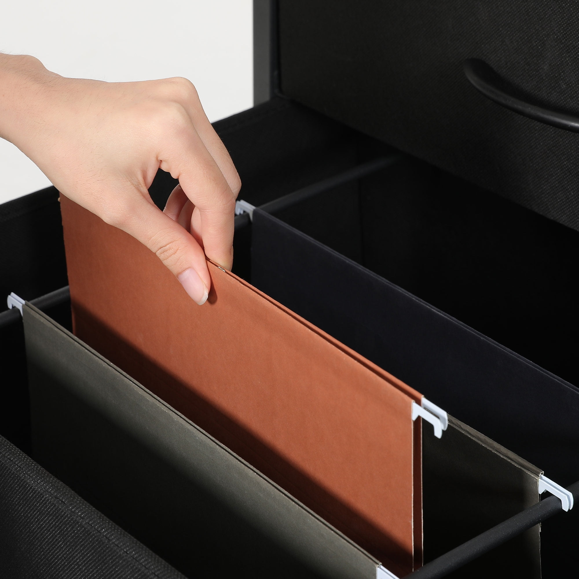 Uforic Mobile File Cabinet with 2 Drawer , Fabric Vertical File Cabinet with Wheels & Charging Station, Printer Stand with Open Shelf Fits A4 or Letter Size, Black