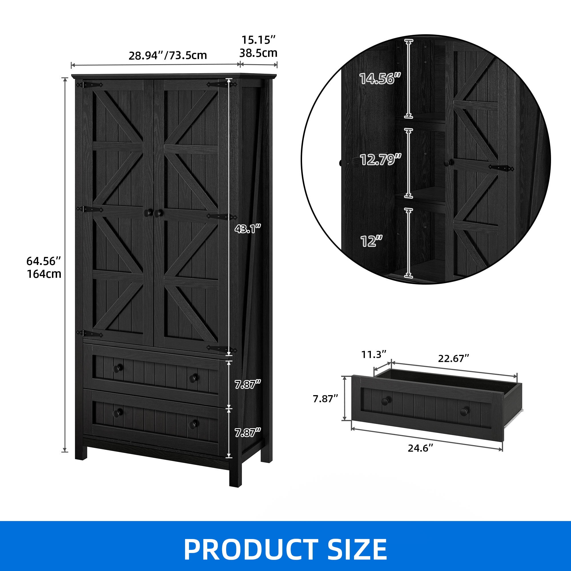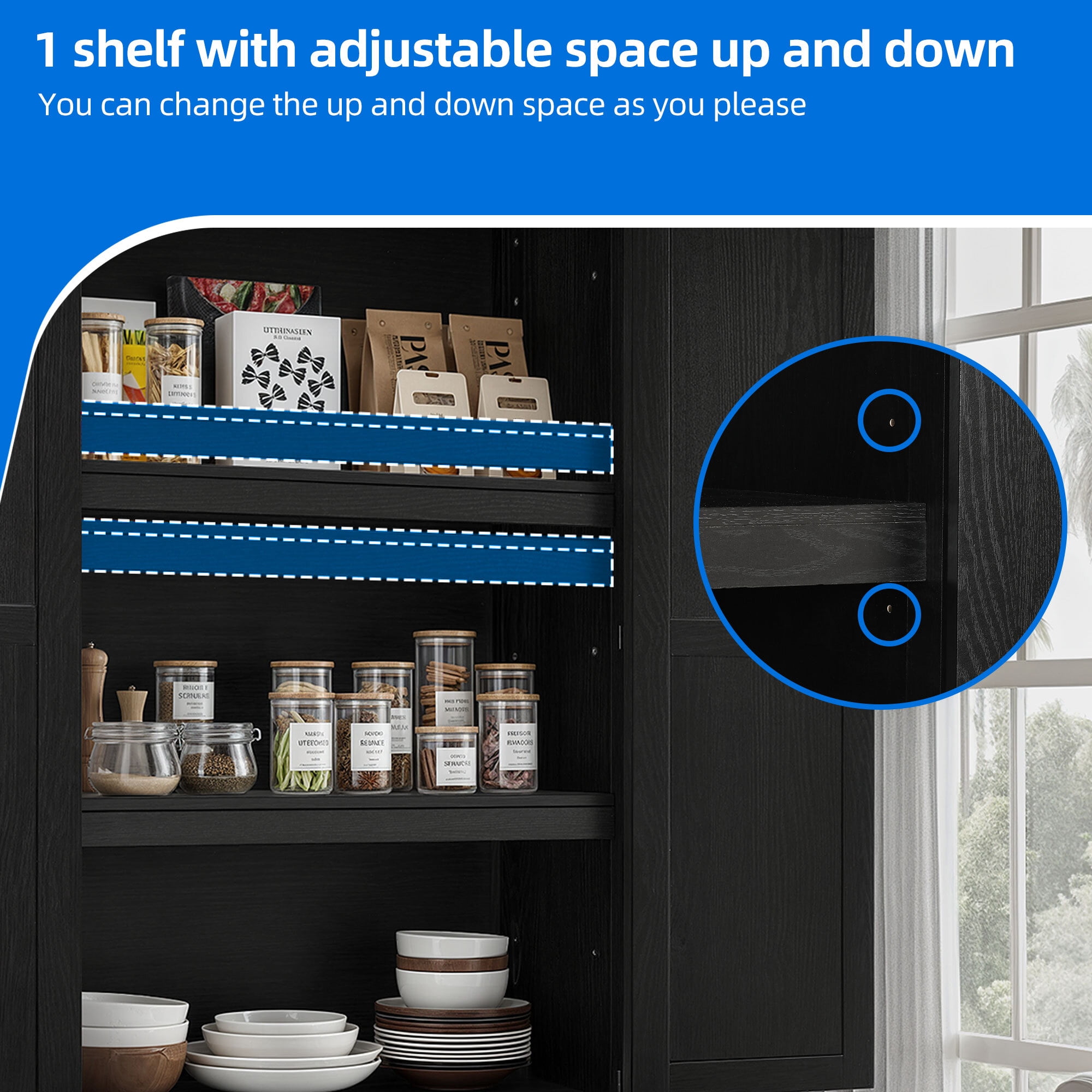 Uforic Pantry Cabinet with Drawers & Shelves, Kitchen Storage Cabinet with Doors, Black