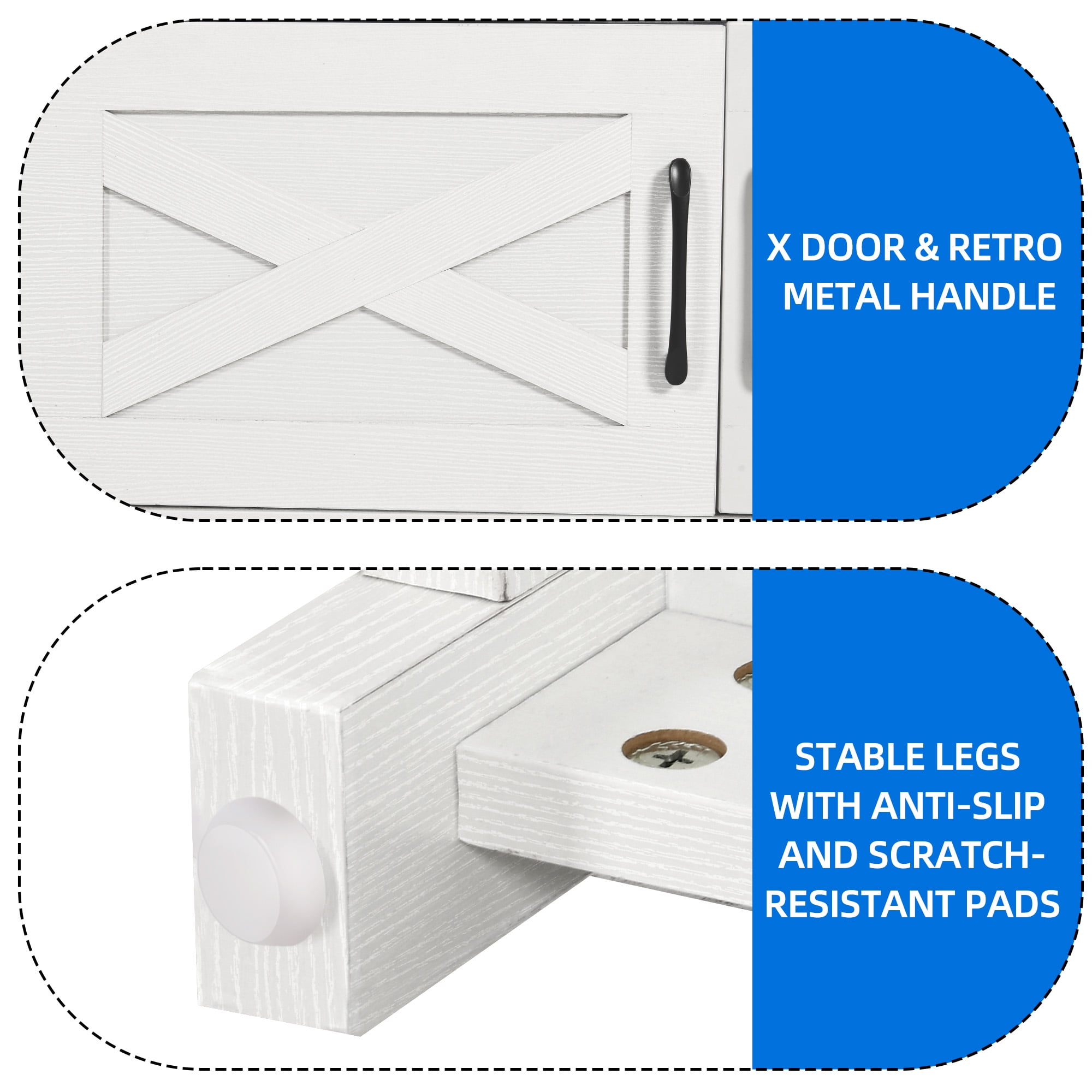 Light up your viewing: Transform your living room into a cinematic experience with this TV stand entertainment center’s built-in light strip. Choose from various colors to set the mood for a thrilling action flick, a heart-warming comedy, or a relaxing night Rustic charm, modern appeal: The X-shaped cabinet doors add a touch of farmhouse chic, while the black and white finishes create a sleek, modern look. This TV console media blends style and function for your living space Classic color palette: Neutral colors for the win! The classic combo of black and white makes our cabinet a statement without being too flashy. It’s clean and modern, going well with any decor you’ve got Smart design: This TV cabinet balances style and functionality, featuring open shelves to showcase your decor, while hidden storage compartments keep clutter neatly contained, allowing you to enjoy a neat and organized surrounding Built to last: Thickened board resists warping and sagging, even with extensive essentials on it. Four sturdy support legs provide a reliable and steady foundation, ensuring years of use in your office, home, or any other setting