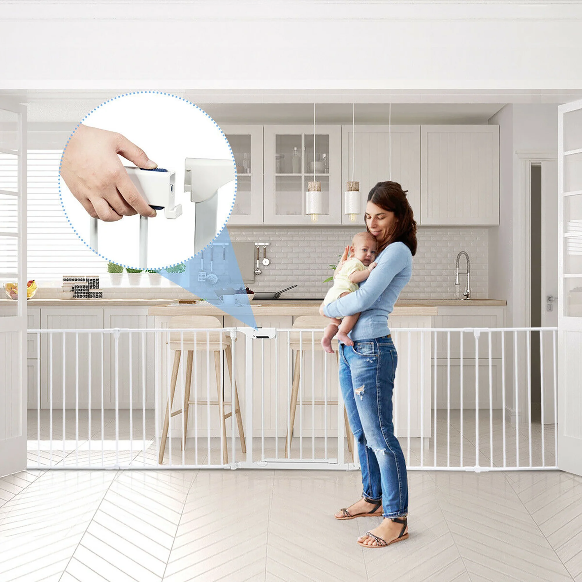 Costway 6 Panel Baby Safe Metal Door Play Yard Barrier Pet Fence Safety Adjustable White