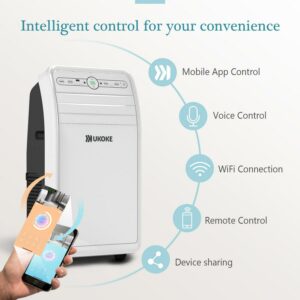 Ukoke USPC01W Smart Wifi Portable Air Conditioner, Works with Mobile App Control, 11,500 BTU ASHRAE, 4 in 1 AC Unit with Cool, Heat, Dehumidifier and Fan, up to 400 Sq. ft