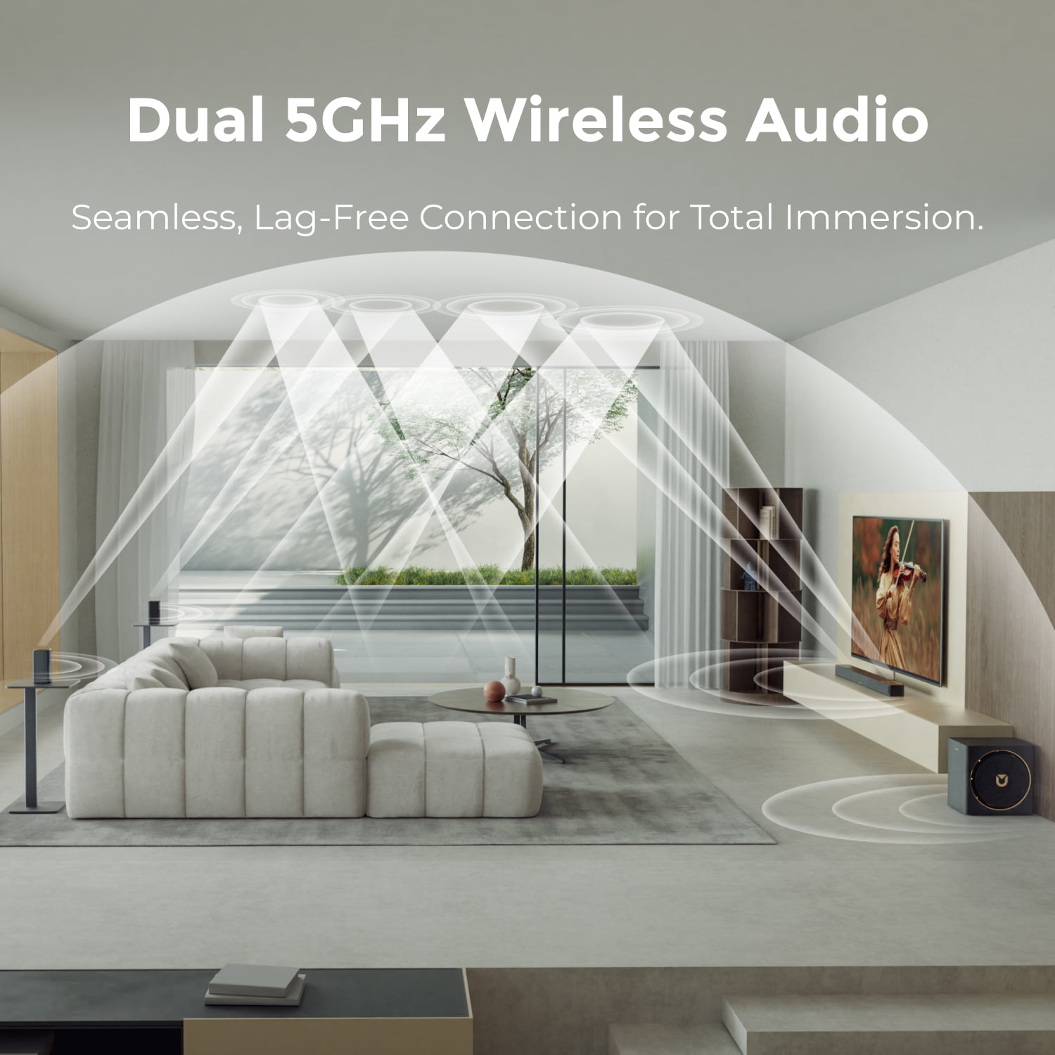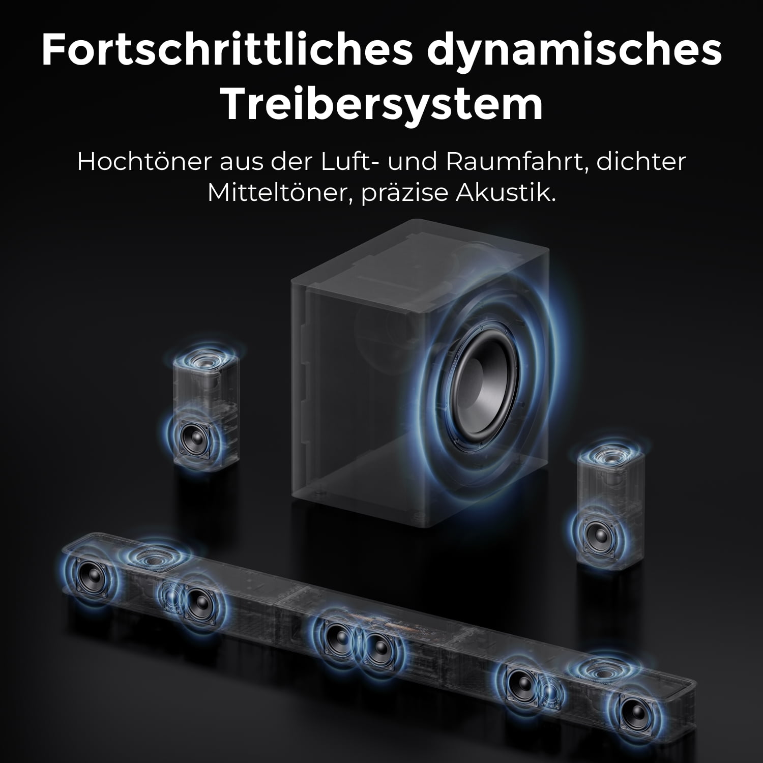 Bring the Cinema Home with Dolby Atmos Detachable Design to Free up Space 4 Flexible Placement Methods as You Like 2-in-1 Bluetooth 5.3 Soundbar 280W Peak Power Multiple Audio EQ Modes