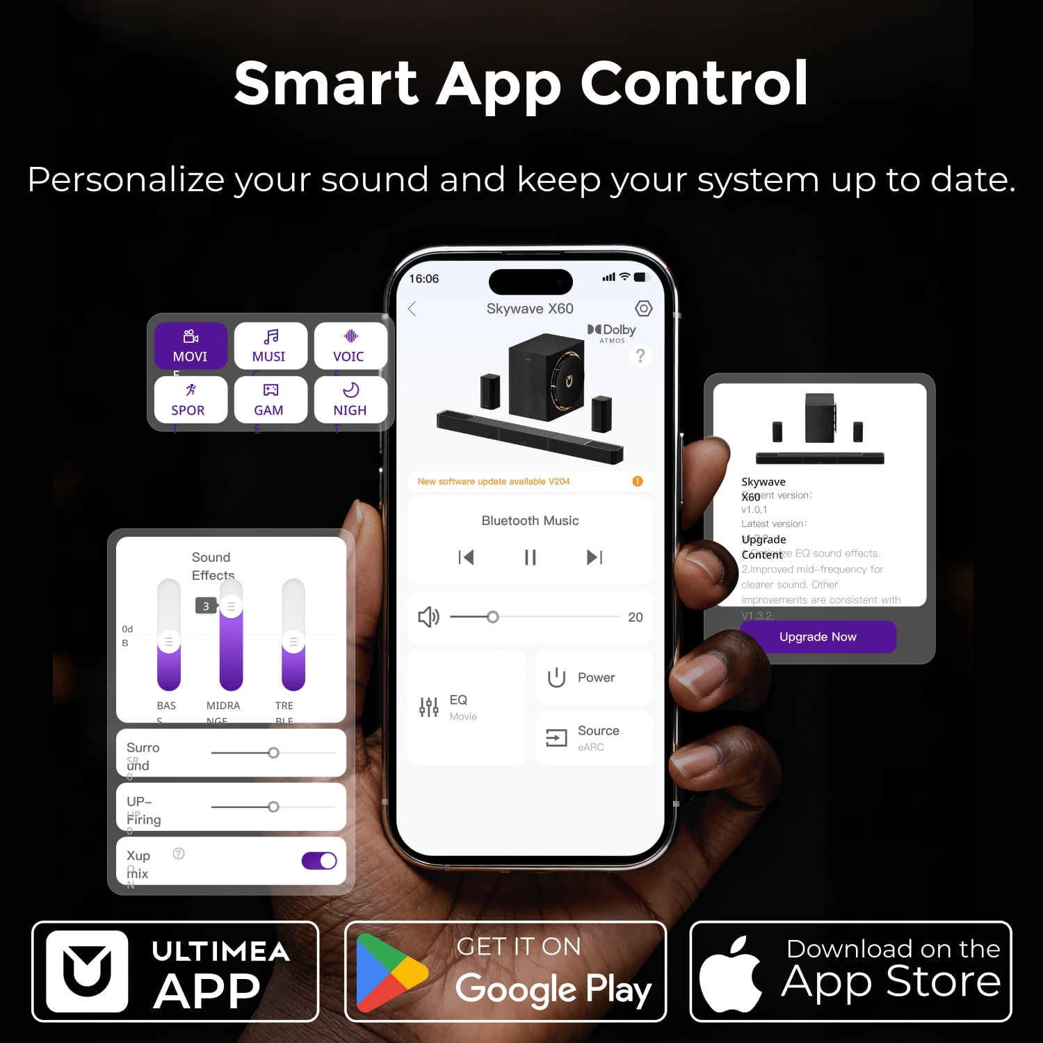 Home / Electronics / ULTIMEA 7.1.4ch Sound Bar with Dolby Atmos, Surround Sound System for TV with 2 Surround Speakers, Sound Bar for Smart TV, Soundbar with Subwoofer for Home Theater, BT 5.4, HDMI eARC, Skywave X60