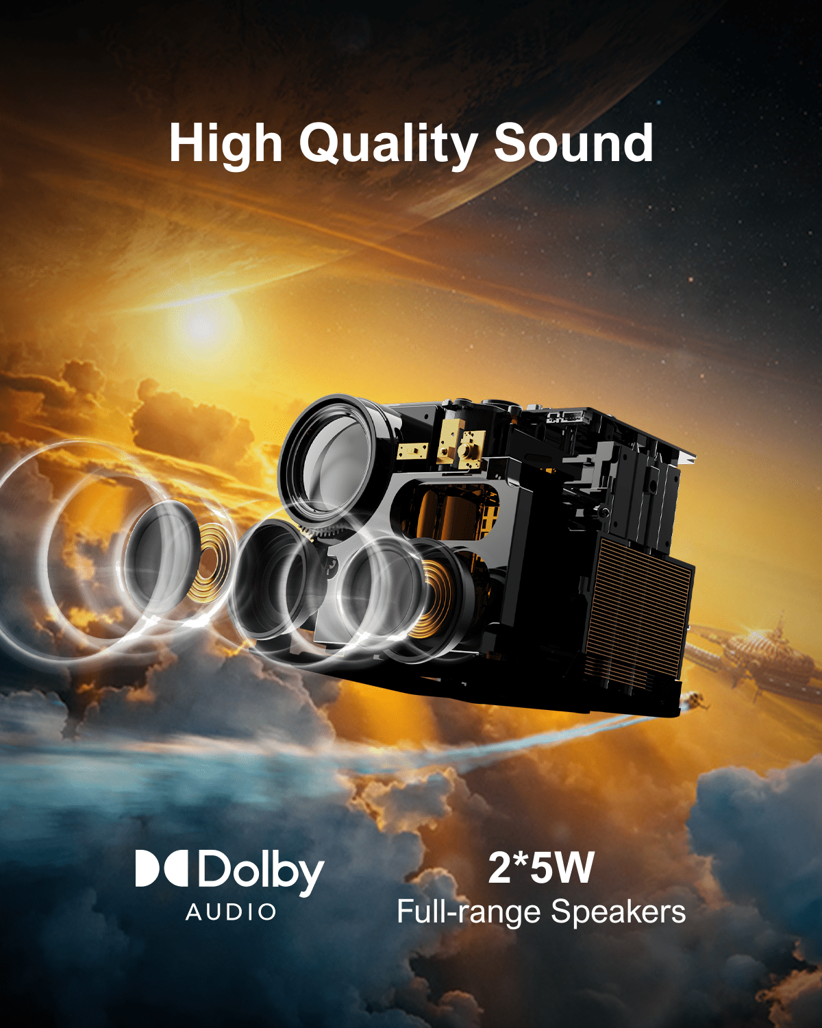 Smart Projector with Android TV 11.0: Experience seamless streaming with Official Android TV 11.0 Authorized, compatible with NETFLIX, HBO MAX, Hulu, Disney+ and Prime Video. Instantly launch over 10,000 apps with robust 2GB RAM and 16GB ROM storage on the Nova C40 Lite home theater projector. Navigate the vast app ecosystem effortlessly with our high-performance projector. 90° Gimbal Stand for Home & Outdoor: The portable projector with integrated Gimbal Design, key to the perfect viewing angle for crystal clear images on ceilings and walls with 360° horizontal pan and 135° vertical tilt. For optimal performance, we recommend staying within the ±20° range. Take the outdoor movie projector for stunning movie night! With Dolby Audio, Wifi and Bluetooth 5.3: Embrace the heartbeat of audio excellence with Dolby Audio on the video projector. Enjoy low-latency connectivity to external speakers through Wi-Fi and the Bluetooth 5.3 technology. Elevate a premium full-range sound with both Nova C40 Lite wifi bluetooth projector and ULTIMEA Sound bar. 2s Auto Focus & Keystone, 4K Supported & Native 1080P: 2 seconds, the movie projector auto focus and keystone corrects under different viewing, freeing up adjustment time. With 4K decoding, native 1080p, 600 ANSI Lumens brightness and HDR 10 + HLG, 4K projector highly reproduct vibrant colorful images, enhances a clear and crisp big screen movie / gaming experience. Dust-proof Optical Design & Lifetime Support: Nova C40 Lite projector features a crafted, fully enclosed optical engine, effectively shields against dust and reduces screen speckles, prolonging the device’s lifespan for a long-lasting viewing experience. The 4K smart phone projector comes equipped with HDMI / USB / AV / Audio ports, ensuring stable connections to PCs, TV sticks, Switch, and laptops. We value your feedback and are always here to help.
