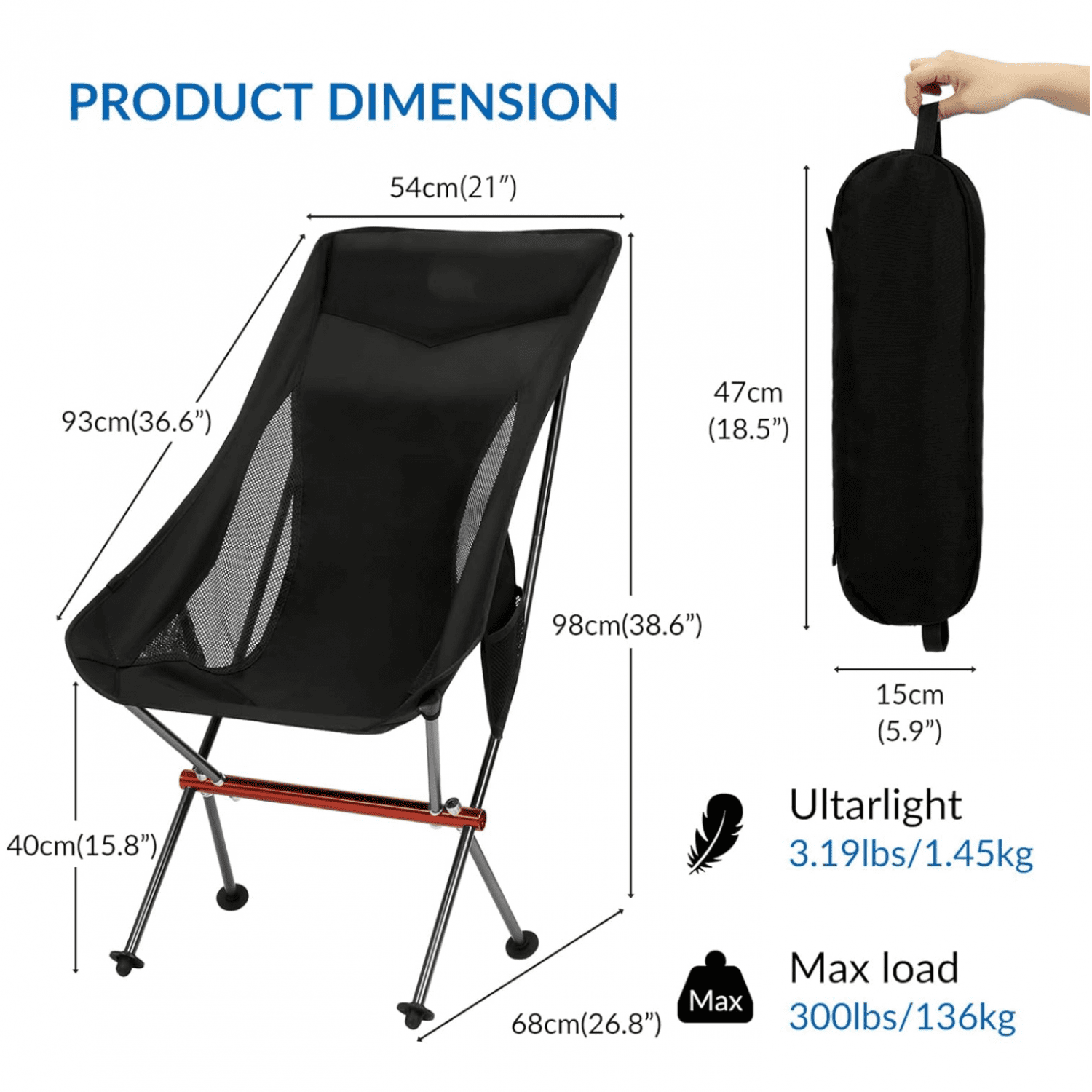 Lightweight and sturdy use on dirt/grass/beach. Aluminum alloy frame and ripstop 600D cationic fabric. Not plastic, will not shatter. Portable and Foldable Load up to 300Lbs. Easy assembly in 15 seconds, no tools required. Good service,24H.