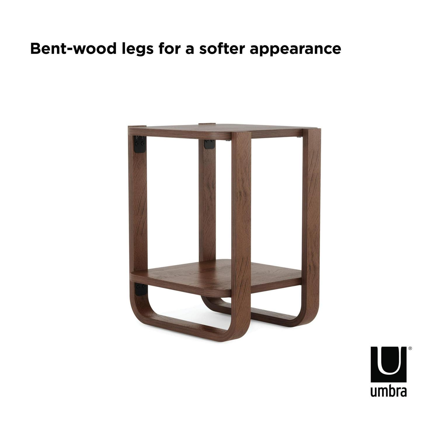 With soft bent-wood legs and two open tiers, Bellwood brings a warm and airy touch to your living room, bedroom or entryway. This versatile side table seamlessly accompanies your space to provide multipurpose storage. Its two tiers allow you to store plants, decor, remotes and more. Holds up to approx. 200lbs (90.7 kg). Part of Umbra’ s Bellwood Family including a coffee table, umbrella stand, storage side table, wall shelves, freestanding shelf, and over the toilet shelf. Because wood is a natural finish, every Bellwood Side Table may slightly differ in grain.