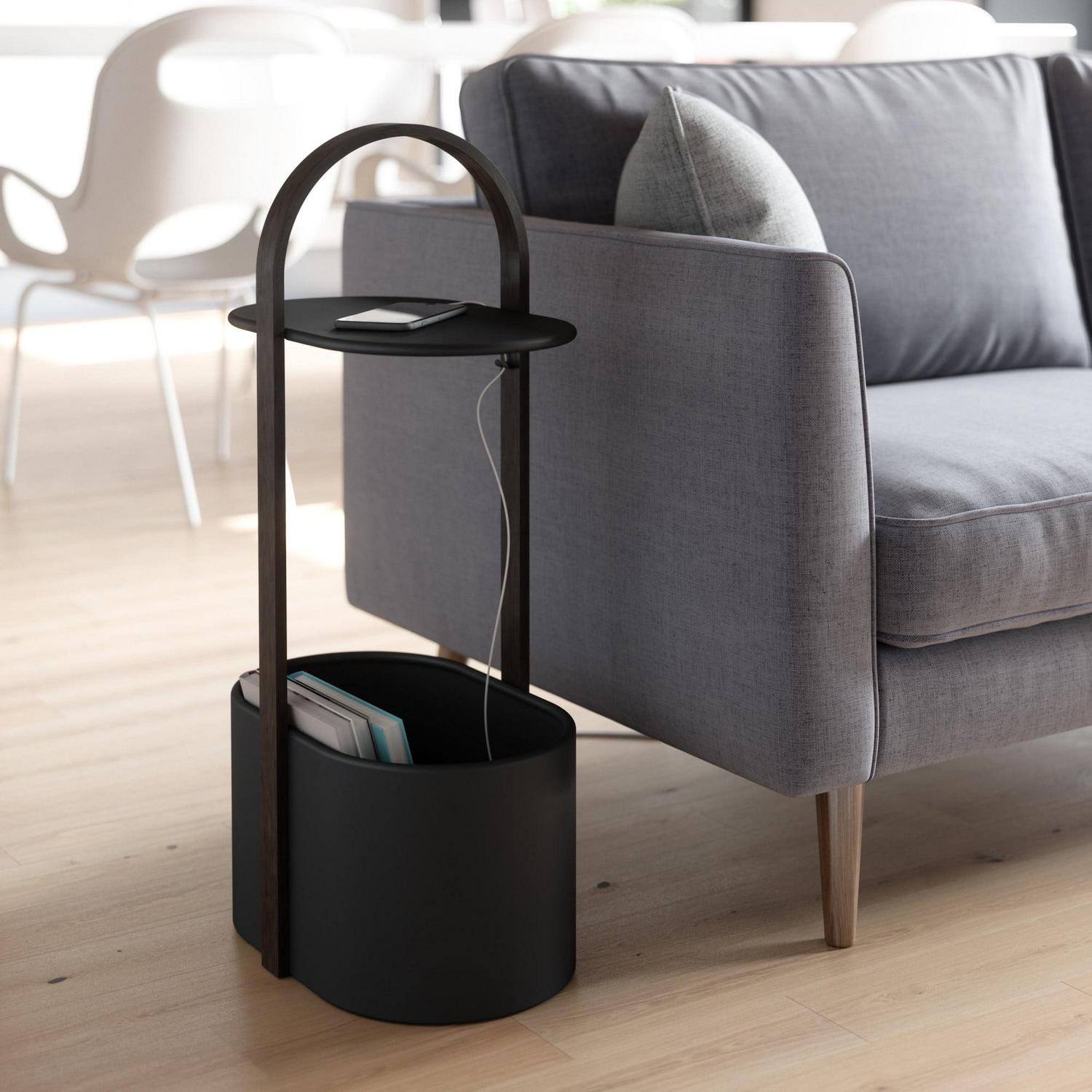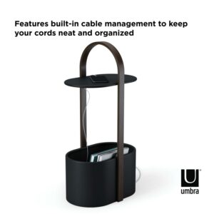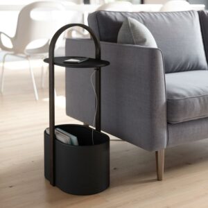A modern solution for messy cables and storage, Bellwood storage side table is both a side table and cable management in one. Made of metal and wood, this side table can be used in any space to provide both multi-purposeful and sophisticated storage. Bellwood side table and cable management features a hook under its top table to neatly hold your device s charging cord and an opening on the bottom for power cables to seamlessly stem through. Its tabletop provides the perfect spot for your device or a glass of wine, while its underneath storage container works great for cables or larger items like blankets or books. Measures 13.88 x 9.5 x 27 inches (35 x 24 x 68.5 cm). *For best care: use coasters to avoid direct contact to wood surfaces and if you experience a spill, wipe with a damp clean cloth immediately. Wipe surfaces with water only using a damp clean cloth.