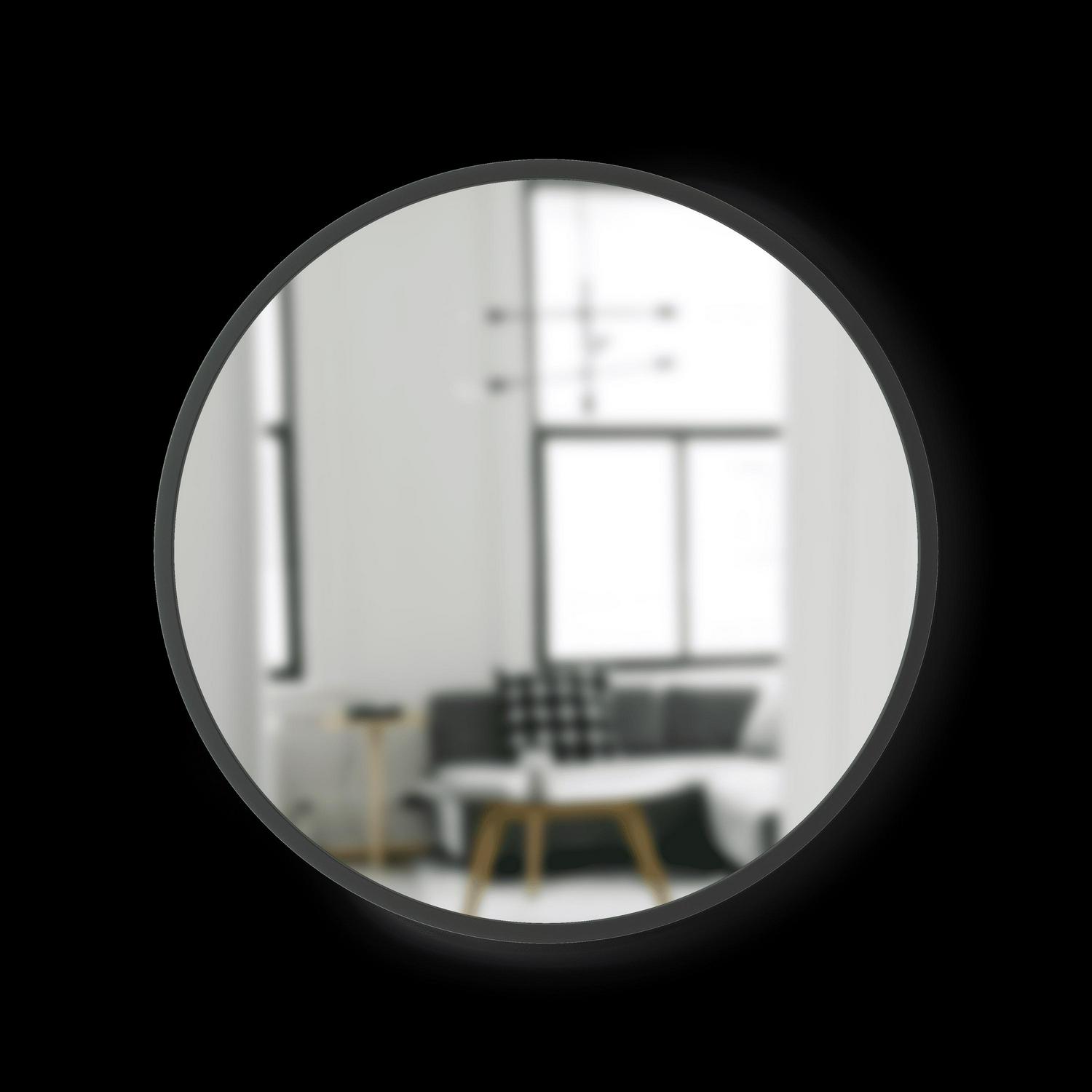 The Hub Mirror looks great in any room it s put in. Its innovative rubber frame makes it more durable than a typical wall mirror, and gives it a modern, industrialized look. Its reflective surface helps to attract natural and artificial light, instantly making the room appear larger and brighter. With a clean and modern design, the Hub Mirror fits with a variety of decor styles and brings an instant refreshing touch to your wall. Available in a variety of finishes and sizes to best suit your space.