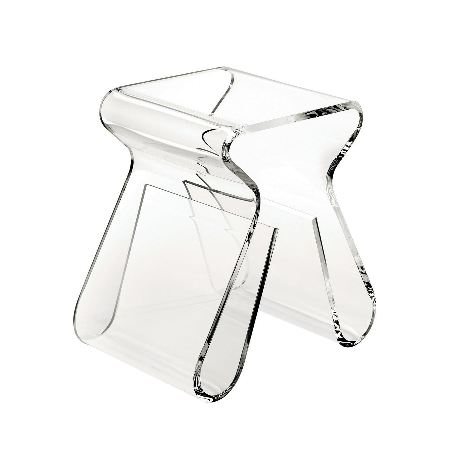 The acrylic Magino Stool is perfect as a nightstand, end table or stool with its integrated storage to hold magazines, books or records. Its curved legs and transparent body makes for a chic and simple versatile piece of furniture. Measuring, 16½ x 17 x 11½ (42 x 43 x 29 cm) it functions as a stool, side table and a magazine rack, without taking up tons of space. The acrylic is thick at 13 mm, lending to Magino s graphic lines and durability (this piece is shatter-proof). Put the finishing touches on your space with this eye-catching piece of furniture. Max weight capacity of 200lbs. (90 kg).