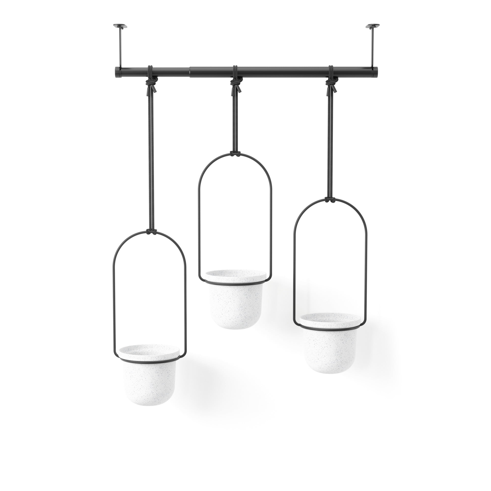 DISPLAY PLANTS IN ANY WINDOW: By hanging your planters on an extendable metal rod, Triflora makes it easy to water and display plants in your window without taking up space on the window sill ADJUSTS HORIZONTALLY AND VERTICALLY: Slide Triflora’s three ropes along the metal rod and adjust their lengths to fully customize the placement of each hanging planter HOLDS STANDARD SIZE POTS: Features recycled molded polypropylene planters that allow Triflora to be the lightest weight possible, even once plants are potted ; fits standard 3-inch (7.6 cm) diameter pots and holds up to 15lbs. (6.8kg) ALL MOUNTING HARDWARE INCLUDED: Triflora comes with mounting hardware, fits any standard 24-inch (61 cm) window, and can be ceiling or wall-mounted; ideal for herbs, succulents, vines and more ORIGINAL DESIGN & SATISFACTION GUARANTEED: Our team of international designers brings thought, creativity and original design to everyday items. Umbra products are made to last using high quality materials and we back that with a 30-Day Money Back Guarantee & a 5-Year Manufacturer’s Warranty. Don’t be fooled by copy-cat products. Choose Umbra and get the original