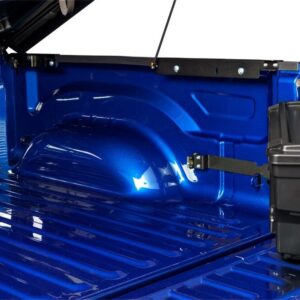 – This toolbox swings out nearly 180¬ towards you for easy access from the tailgate & swings back into a locking position over the wheel well for maximum bed access.