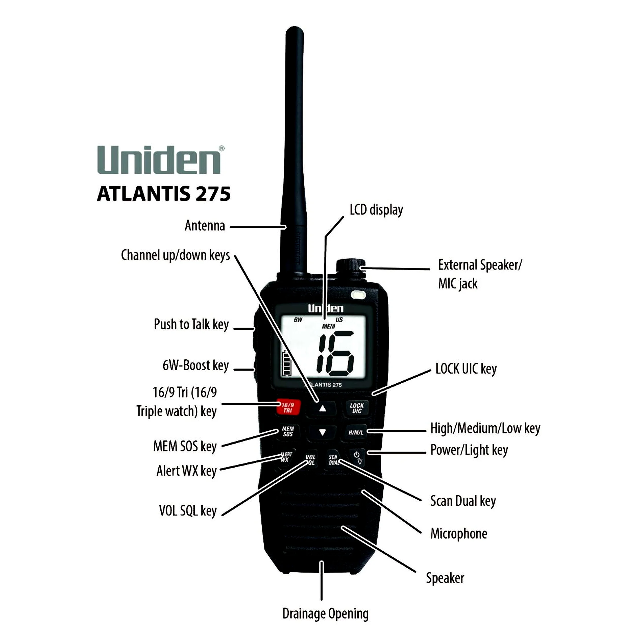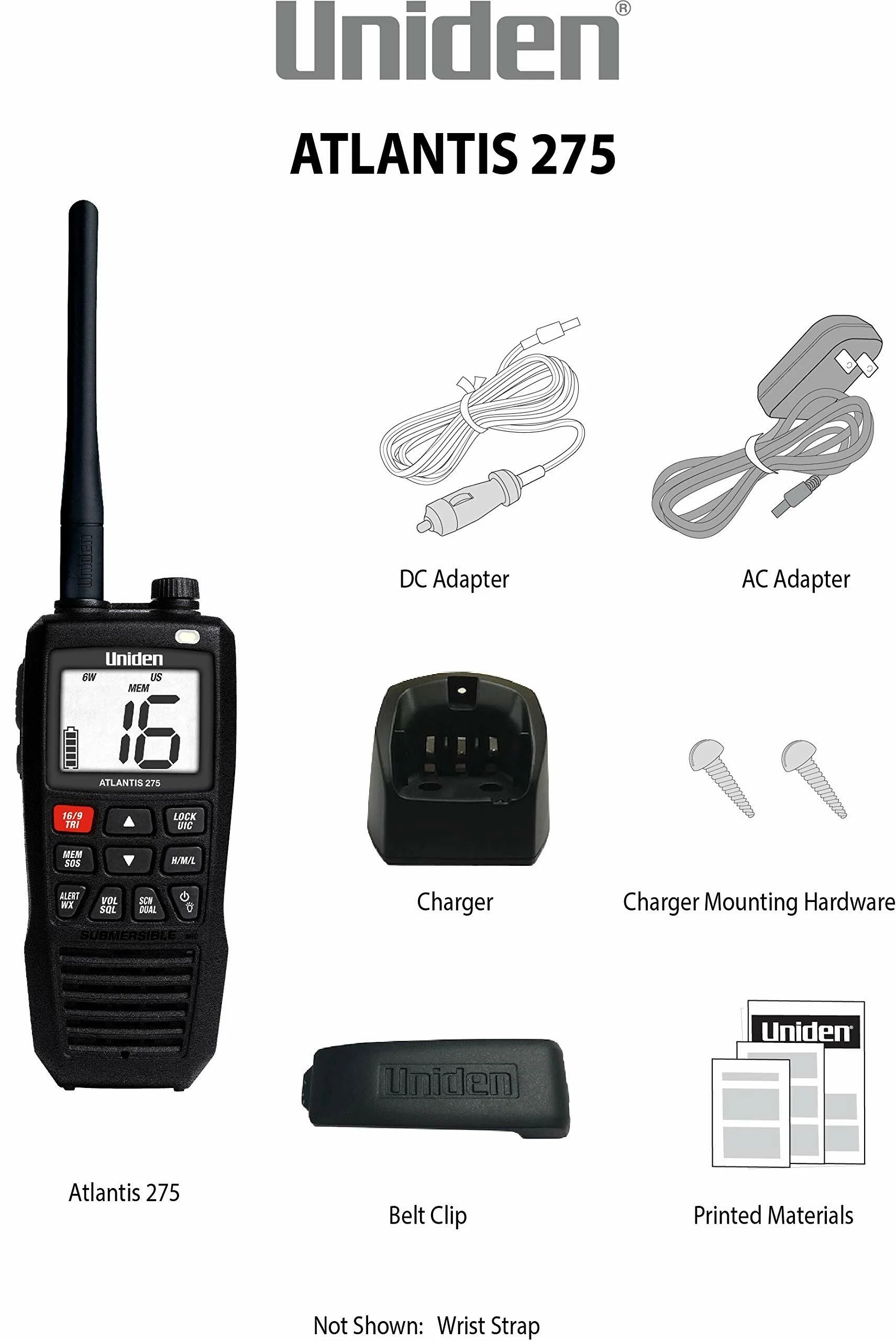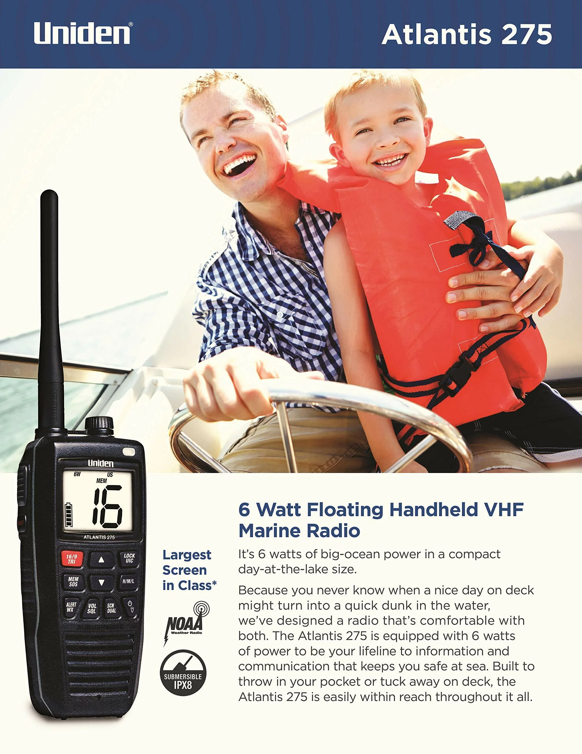 Uniden Atlantis275 Marine Hand Held Floating VHF Radio, IPX8