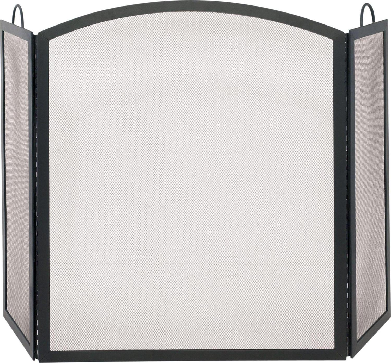 With its popular black wrought iron finish, this UniFlame 3-panel fireplace screen brings a traditional, yet refined elegance to the hearth. It s 3- panel design is perfect for accommodating larger fireplaces. Integrated handles makes tending to fires easy and graceful arched curves accents this screen’s classic elegance.