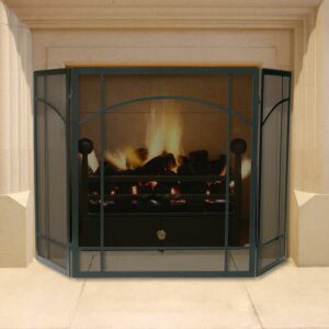 With its popular black wrought iron finish, and craftsman design motif, this UniFlame 3-panel fireplace screen brings a traditional, yet classic elegance to the hearth. It s 3-panel design is perfect for accommodating larger fireplaces. Graceful arched curves adds to this screen’s beauty.