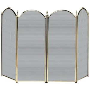 With its polished brass finish, and 4 fold design, our UniFlame folding screen is perfect for accommodating larger fireplaces. Adjustable side panels pivot on piano-style hinges. This screen’s 4-panel design and integrated carry handles make tending fires simple and easy. Traditional styling and gracefully arched detailing, makes this screen a compliment to any decor.