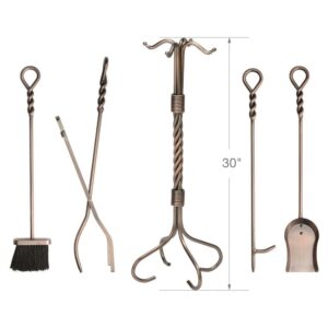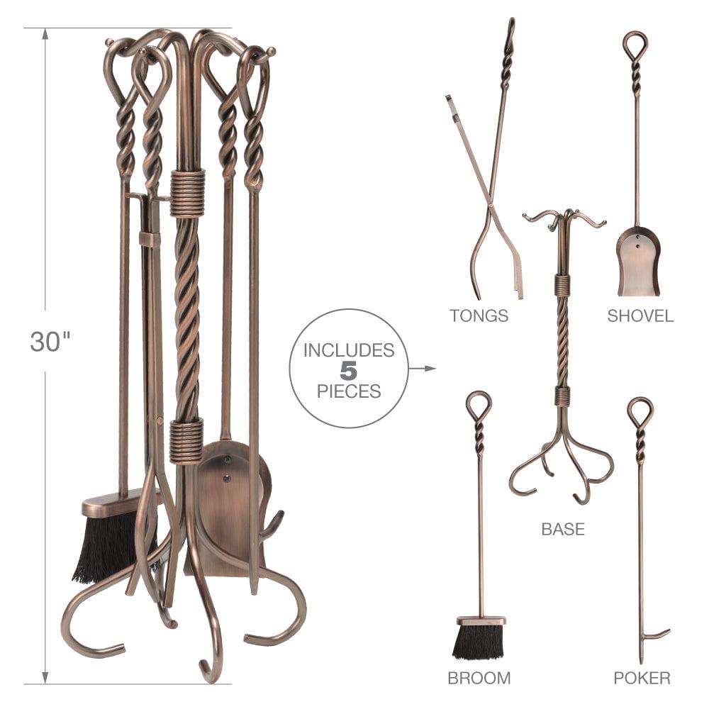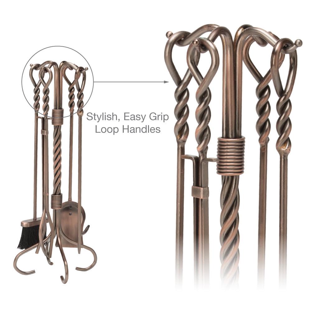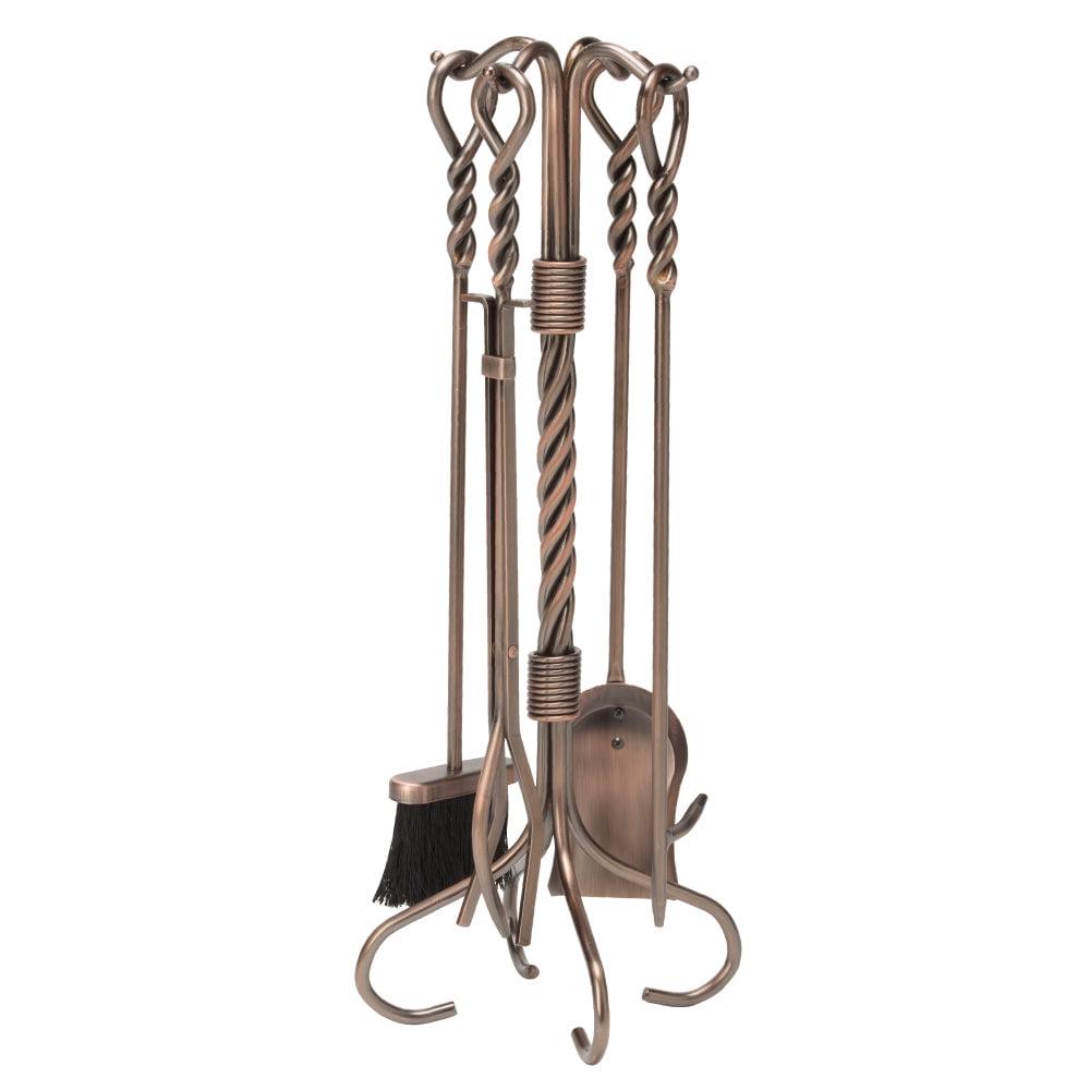 Help tend fires and add a classic look to your fireplace with the UniFlame 5-Piece fireplace twist tool set.. Featuring a twist design and matching twisted looped handles, this set includes all the tools you need to tend to a fire. It’s popular antique copper finish will accent a variety of decor.