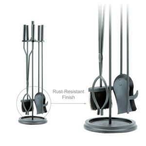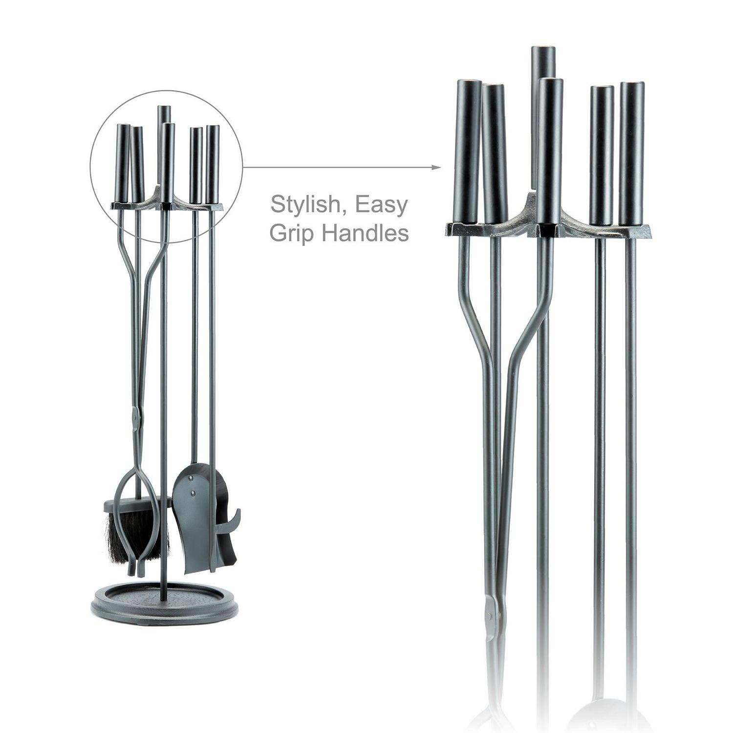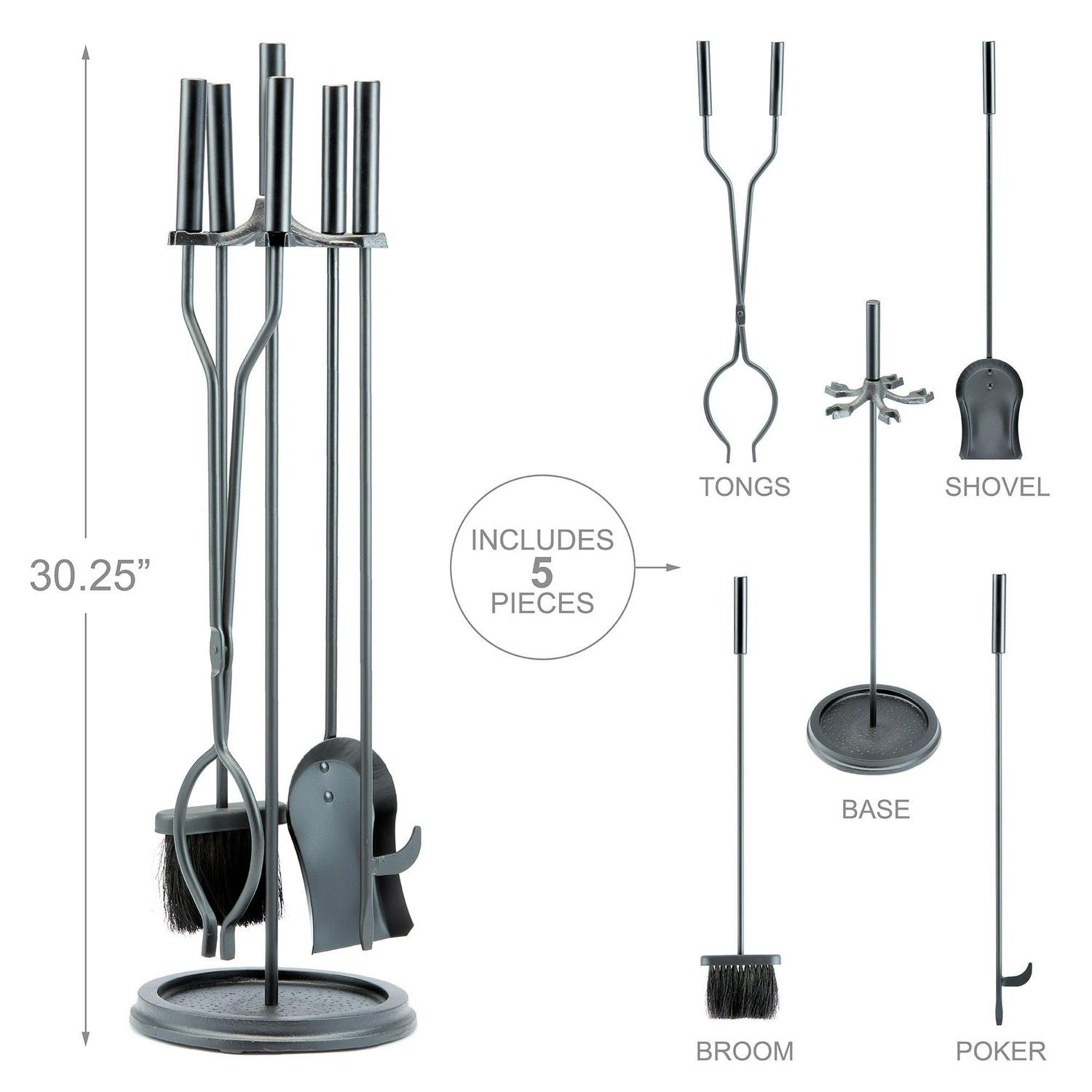 This UniFlame 5-piece fireplace tool set has all the tools you need to tend to a roaring fire. The set includes poker, brush, log lifter and shovel. Its popular black finish and modern styling will accent a variety of décor.