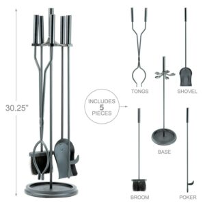 UniFlame 5 Piece Black Finish Fireset with Cylinder Handles