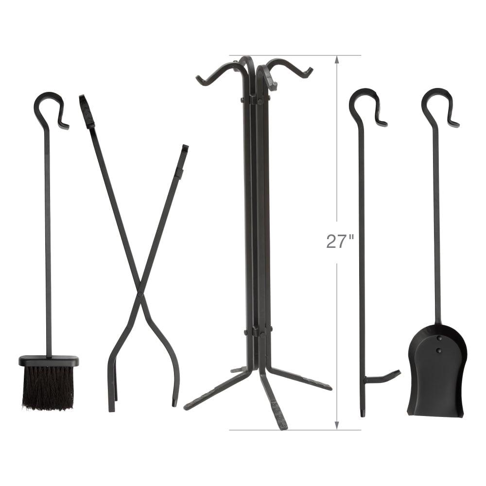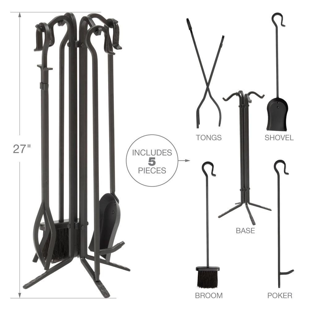 - Set includes: Stand, Tongs, Shovel, Poker, and Brush