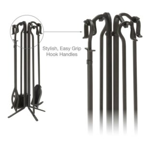 UniFlame 5-Piece Black Wrought Iron Fireset with Crook Handles