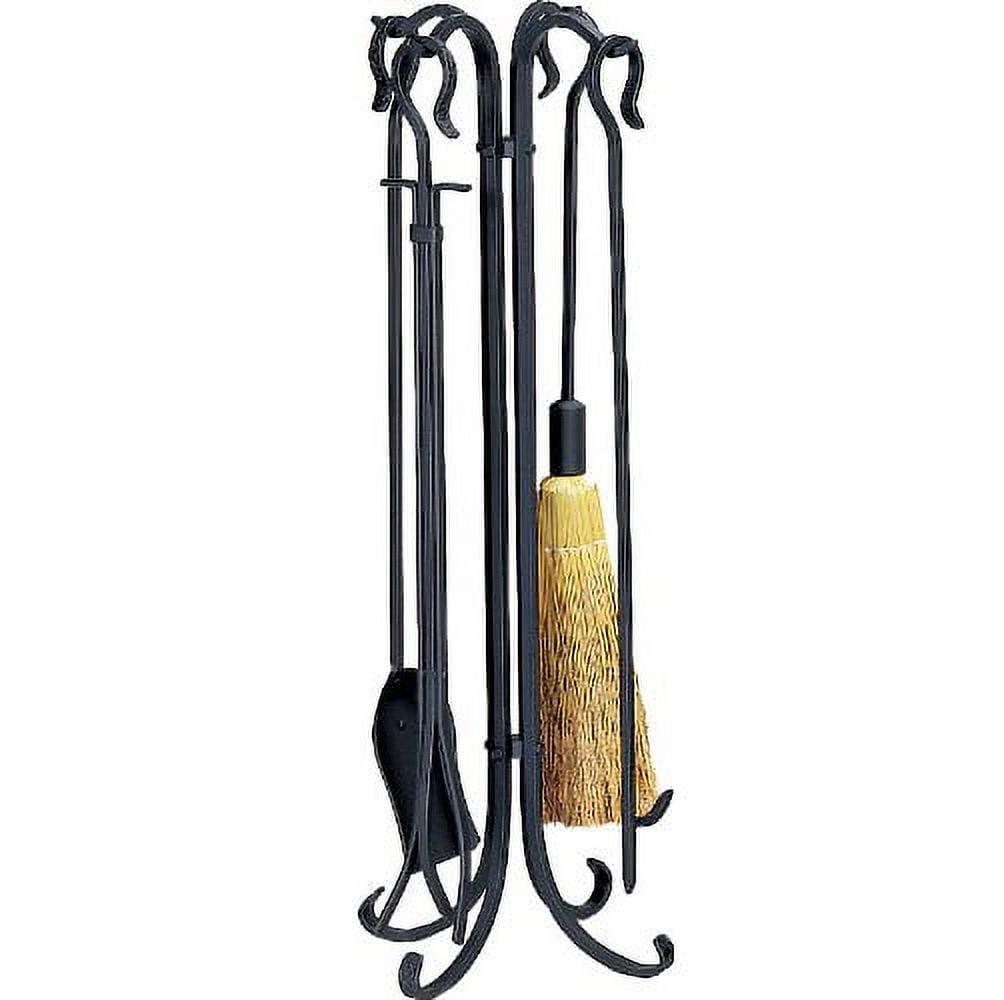 UniFlame 5 Piece Black Wrought Iron Heavyweight Rustic Fireset with Crook Handles