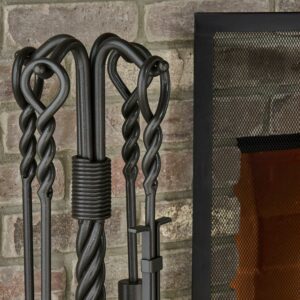 – 5-IN-ONE COMPLETE SET: Decorative and beautiful, this fireplace accessories set can meet all your needs to tend to your fireplace. This tool set includes sturdy stand, brush broom, shovel, tong, and poker. The integrated loop on the handle makes each tool hang in order, which looks tidy and fits into most design motifs.