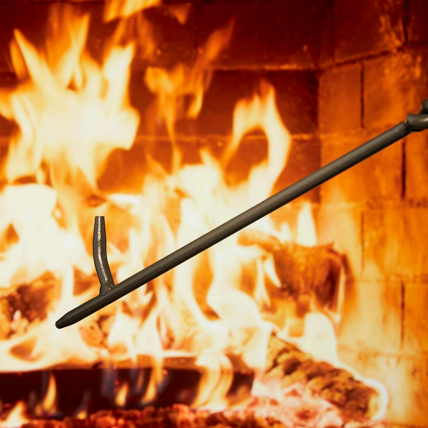 – FUNCTION AND DESIGN: The poker keeps you away from the flames while still allowing you to move logs and control the flames. The fireplace tongs help to safely place kindling and reposition logs. The fireplace shovel quickly and easily scoops used firewood and ash. The attractive stand keeps all the fireplace tools neat