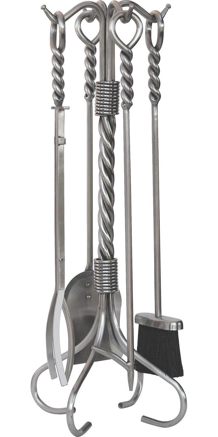 Help tend fires and add a classic look to your fireplace with the UniFlame 5-Piece fireplace twist tool set. Constructed of heavy duty 304 stainless steel, this toolset has a twist design and matching loop handles. This set includes all the tools you need to tend to a fire and It’s popular stainless steel finish will accent a variety of decor.