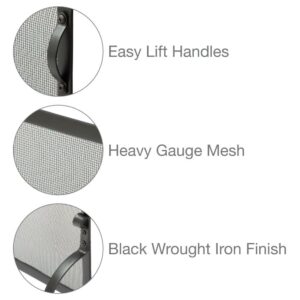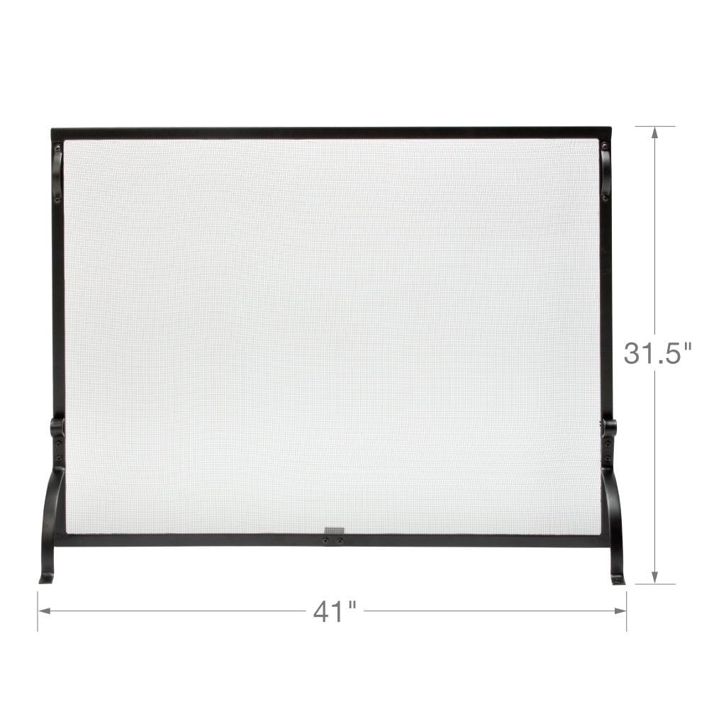 Add beauty to your fireplace with the medium sized UniFlame single-panel fireplace screen. This durable fireplace screen features a sturdy wrought iron frame with steel legs and heavy gauge mesh. Featuring a black finish, this screen includes integrated handles for easy lifting.