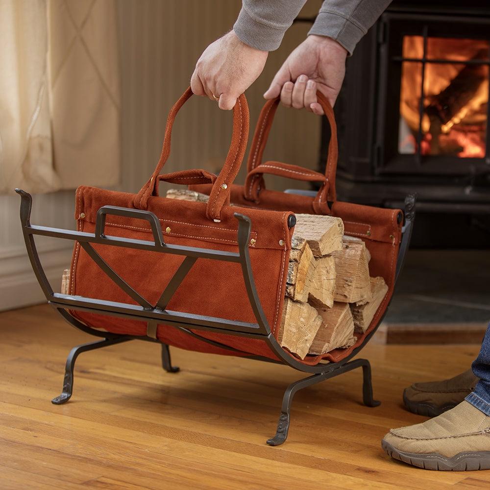 UniFlame Olde World Iron Log Holder with Suede Leather Carrier