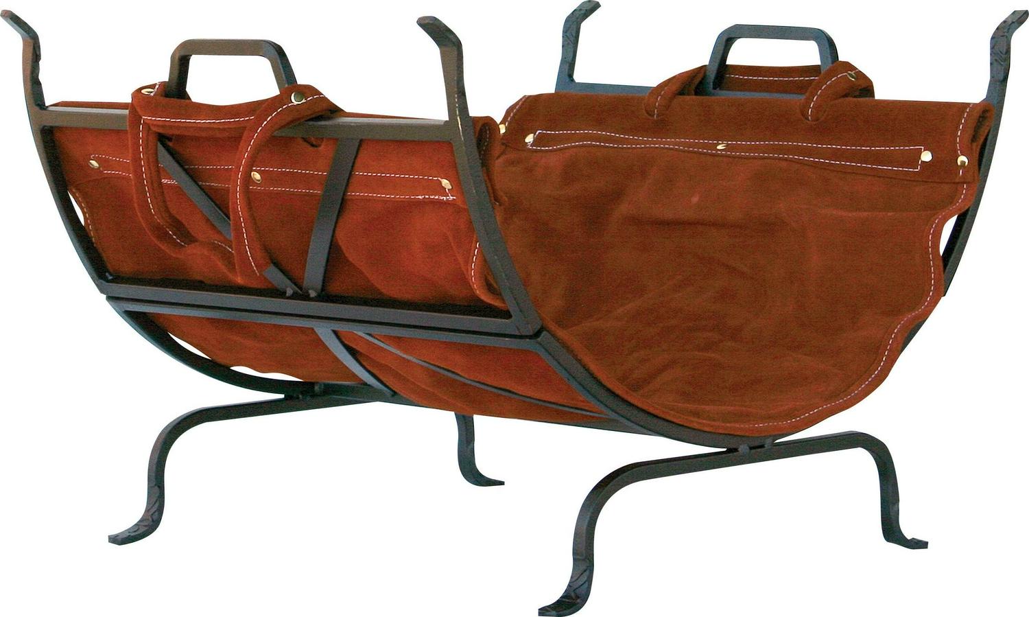 UniFlame Olde World Iron Log Holder with Suede Leather Carrier gives a contemporary look to your hearth and is also a perfect log holder for those larger and heavier load of logs.