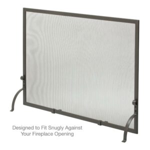 With its traditional black wrought iron finish, our UniFlame single-panel wrought iron fireplace screen evokes a sense of old world craftsmanship with its simple, classic styling. This screen s single-panel design makes tending the fire quick and easy.