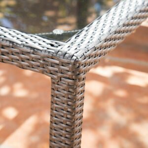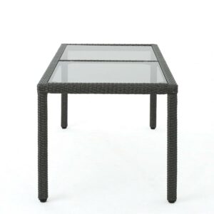 Union Outdoor Wicker Rectangular Dining Table with Tempered Glass Top, Grey