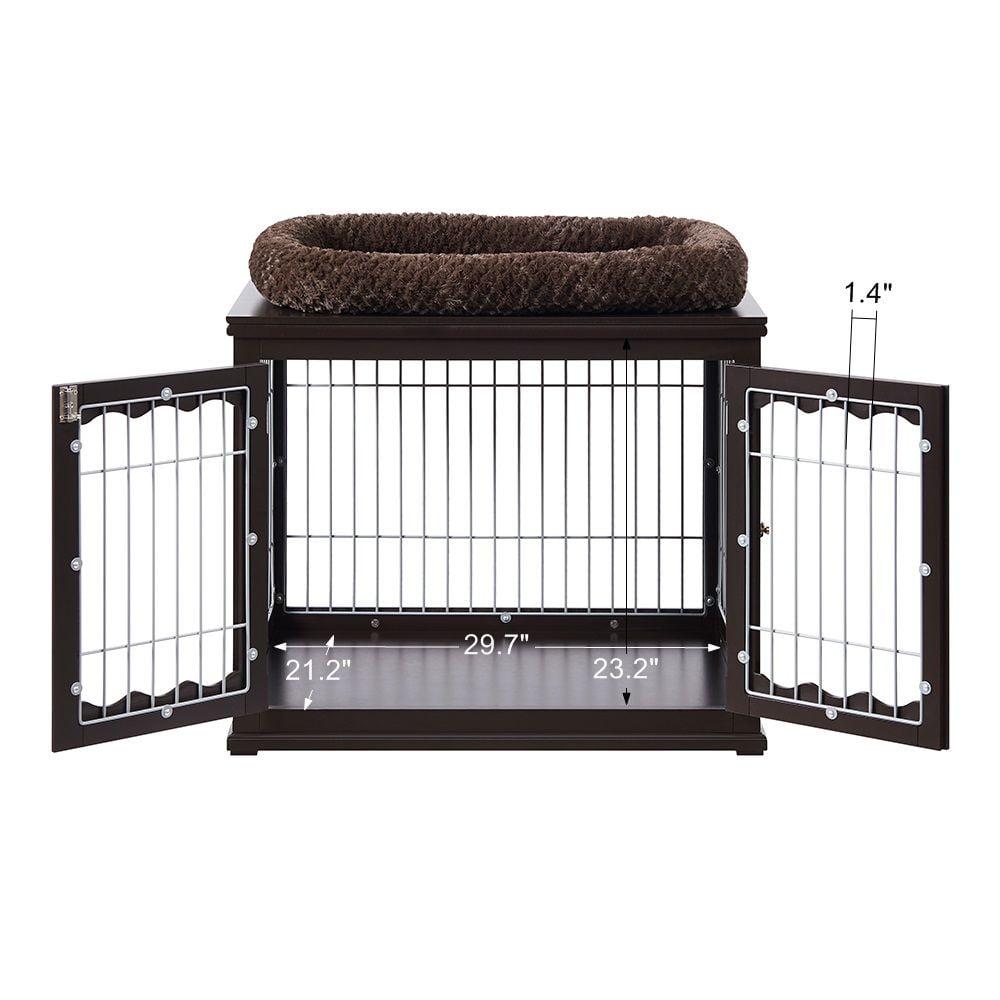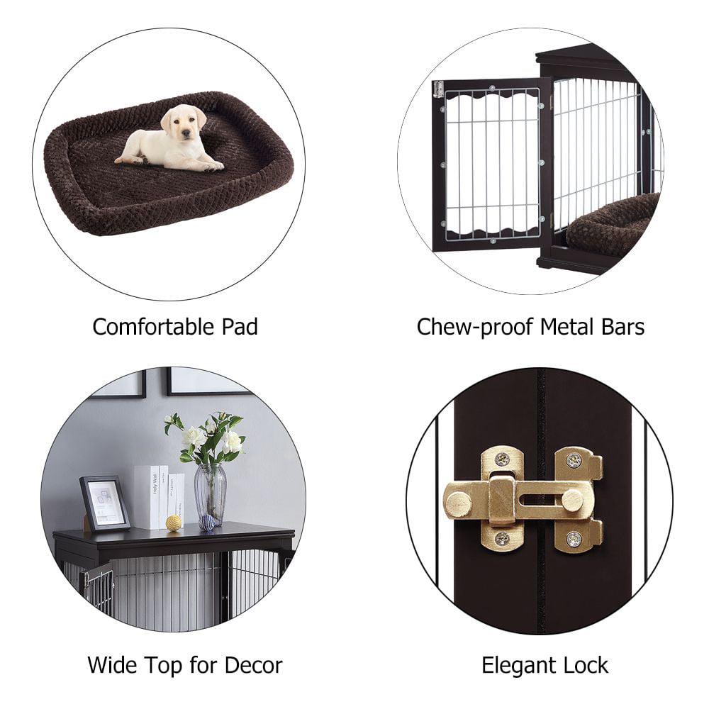 Unipaws Dog Crate with Pet Cushion, Durable Dog Kennel, Fashion Design Dog House, Side Table for Indoor Use, Espresso