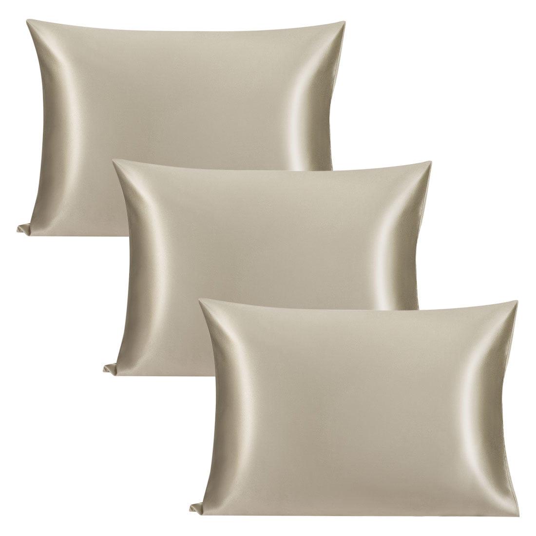 Unique Bargains 3 Piece 25 Momme Smooth Silk Pillow Cases, Standard, Taupe