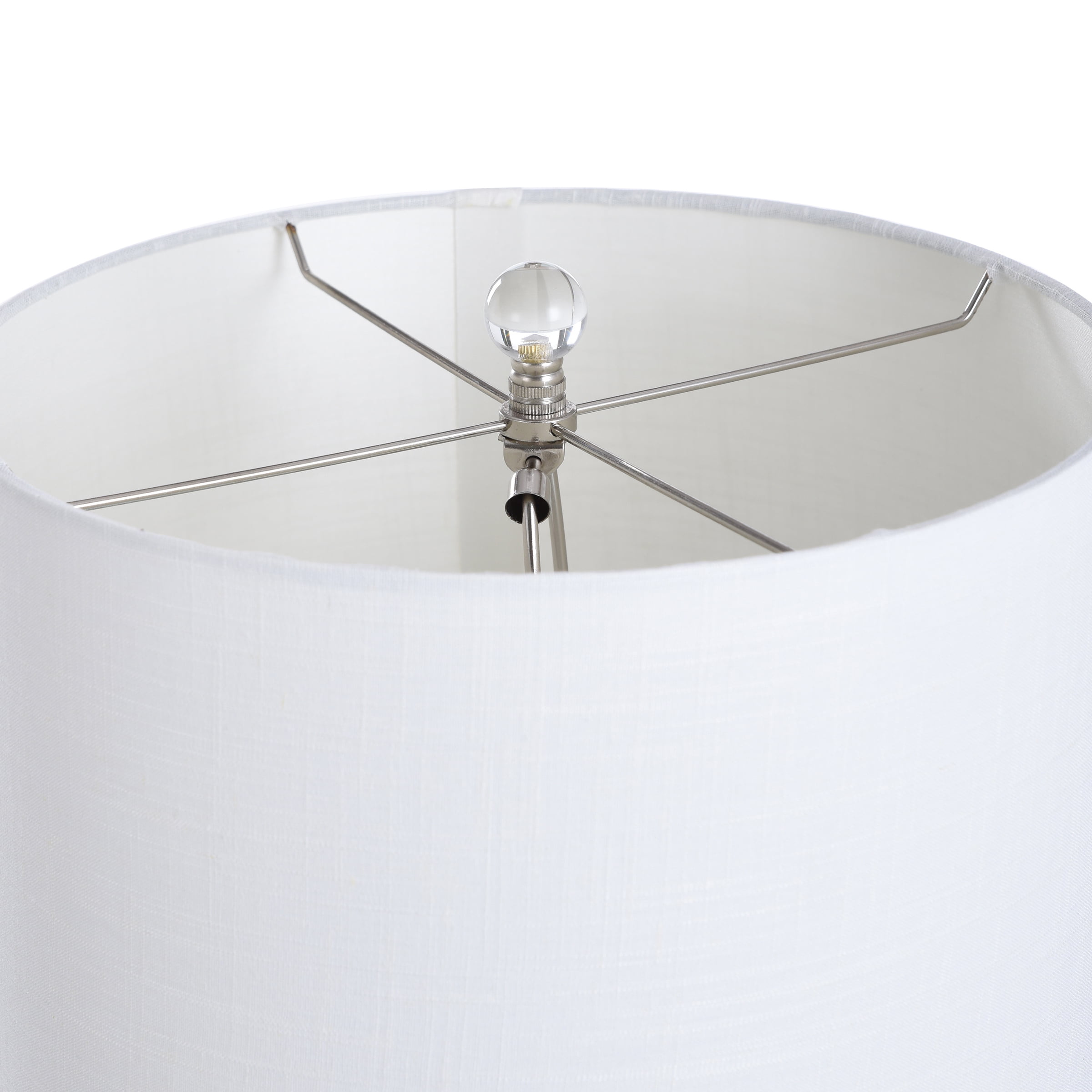 Requires (1) 60 Watt E26 Medium Base Incandescent Bulb (Not Included) Voltage – 110V Dry Location – This item is rated for dry locations, meaning it can be used in an indoor area that is not normally subject to dampness. May include a location subject to temporary dampness provided ventilation is adequate to prevent any accumulation of moisture such as the bathroom Shade Dimensions – 13 diam. x 10H in. Switch Type and Location – On/Off switch located at the neck of the lamp Fixture is compatible with Incandescent, Florescent or LED lamps. Must not exceed fixture wattage. Cord Length – 60″ UL listed in compliance with the nationally recognized safety standards Blue and white streaked genie bottle shaped lamp
