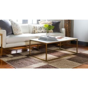 From the Autumn Collection, the earthy tones fused with the rustic appeal create a serene setting, ideal for a myriad of home decors out there! Power-loomed, the rug is not only easy on the eyes but also incredibly functional as well. Comfy, the pile is soft underfoot! The dynamically-hued grids are perfect for laying furniture and lining up your space, too!. Product Features: Color(s): beige, dark brown and light brown. Machine made. Medium pile. Backing: yes. Geometric checkered rectangular area throw rug. Recommended for indoor use only. Easy to clean, stain resistant and does not shed. Use rug pad to reduce slipping and sliding. Rug pad sold separately. Made in Egypt. Care instructions: Spot clean only. Regular vacuuming. Use a carpet cleaner but it should be dried immediately and evenly. In case of creases – roll the rug in the opposite direction, while applying pressure to the rug – take the edge, flip it where there is a crease, and slowly pull the rug back, while applying downward pressure on the crease. Dimensions: 5′ wide x 8′ long. Pile height: 0.33″. Material(s): polypropylene. Backing: jute