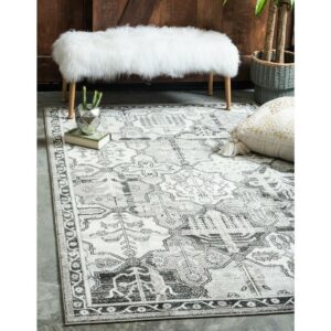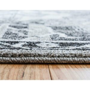 Unique Loom Cathedral La Jolla Rug Gray/Black 5′ 1 x 8′ Rectangle Geometric Bohemian Perfect For Living Room Bed Room Dining Room Office