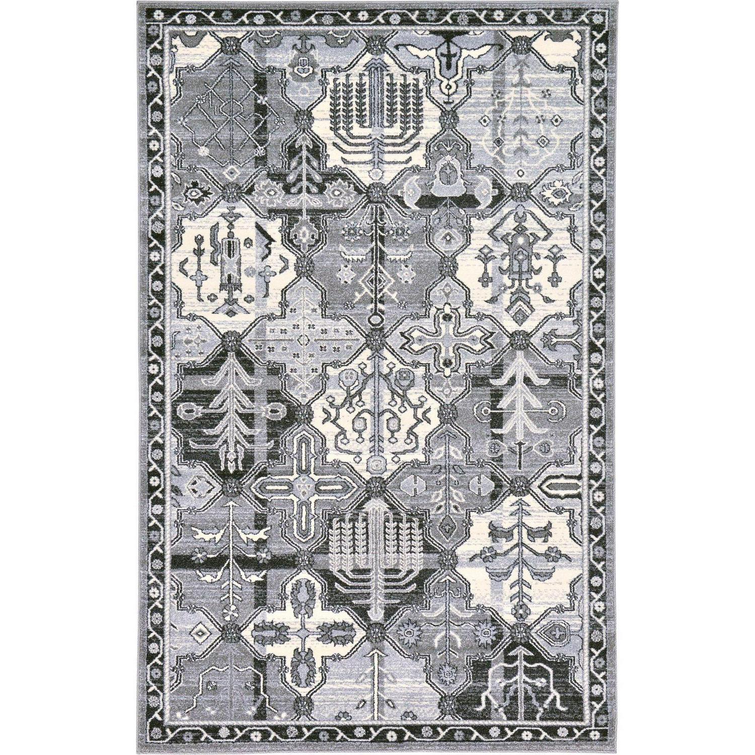 - Gray and ivory geometric area throw rug