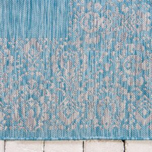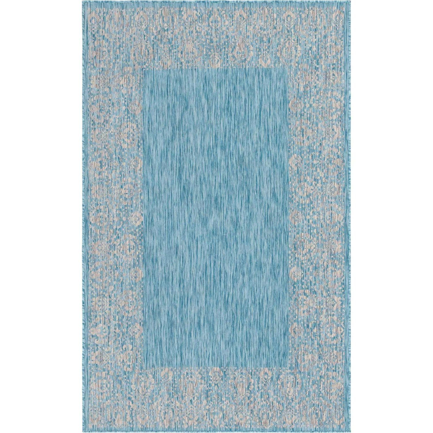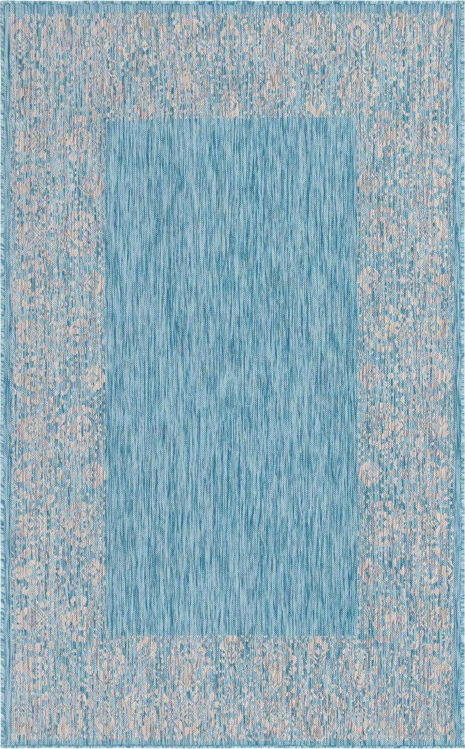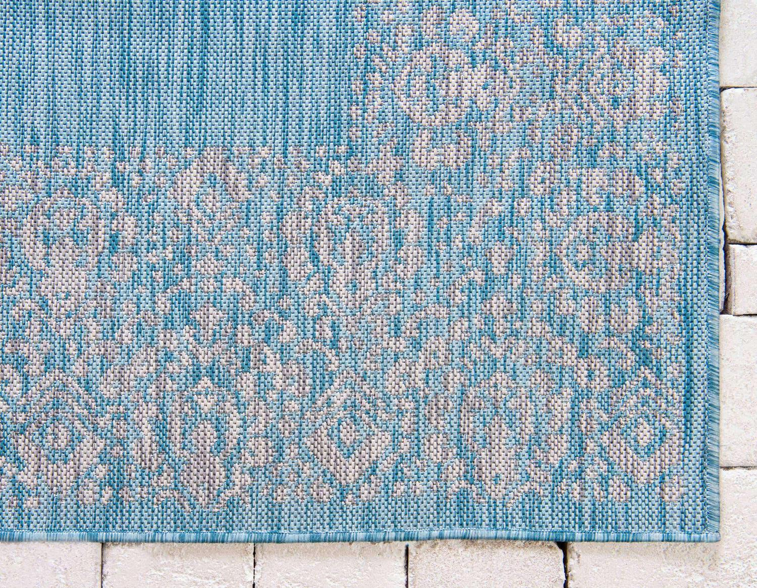 Unique Loom Floral Border Indoor/Outdoor Border Rug Aqua/Ivory 5′ 1 x 8′ Rectangle Floral Contemporary Perfect For Patio Deck Garage Entryway