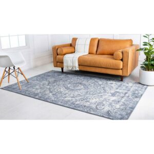 Unique Loom Indoor Rectangle Medallion Traditional/Transitional/Farmhouse Area Rugs Blue/Gray, 5′ 0 x 8′ 0