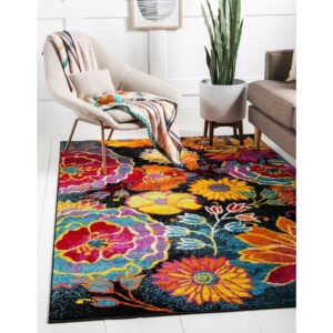 Unique Loom Kennedy Lyon Rug Black/Green 5′ 1 x 8′ Rectangle Floral Contemporary Perfect For Living Room Bed Room Dining Room Office