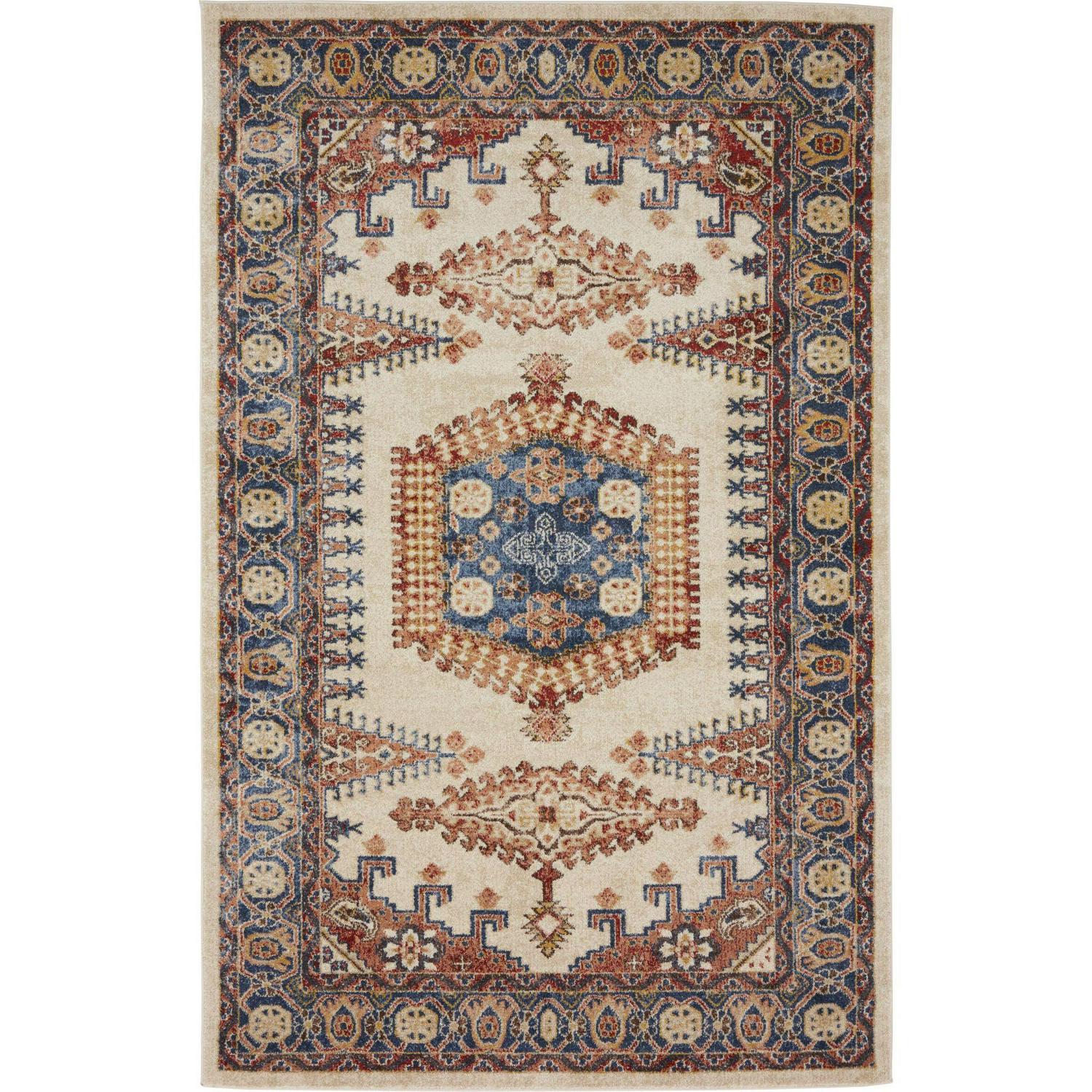 Unique Loom Larissa Utopia Rug Cream/Blue 5′ 1 x 8′ Rectangle Border Tribal Perfect For Living Room Bed Room Dining Room Office