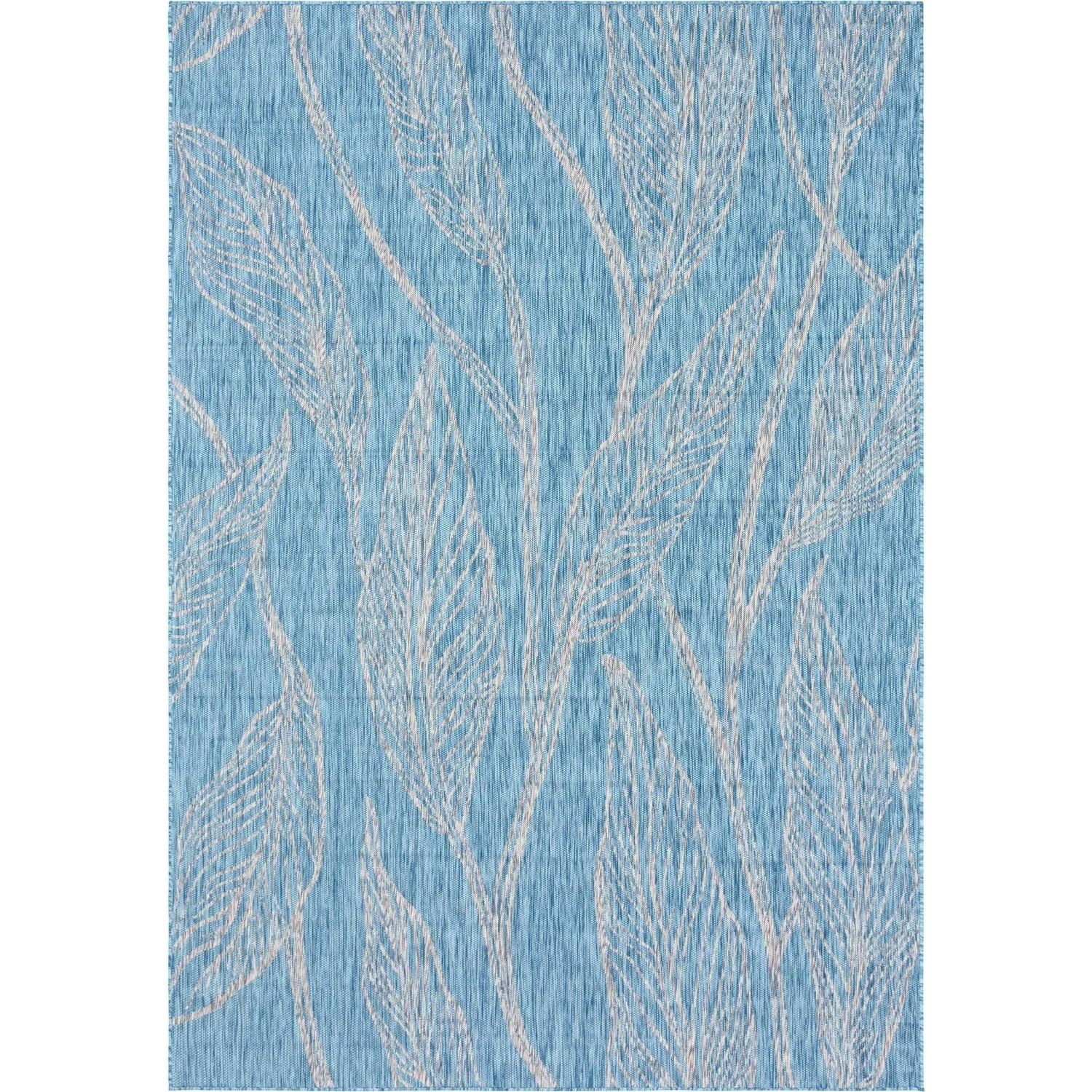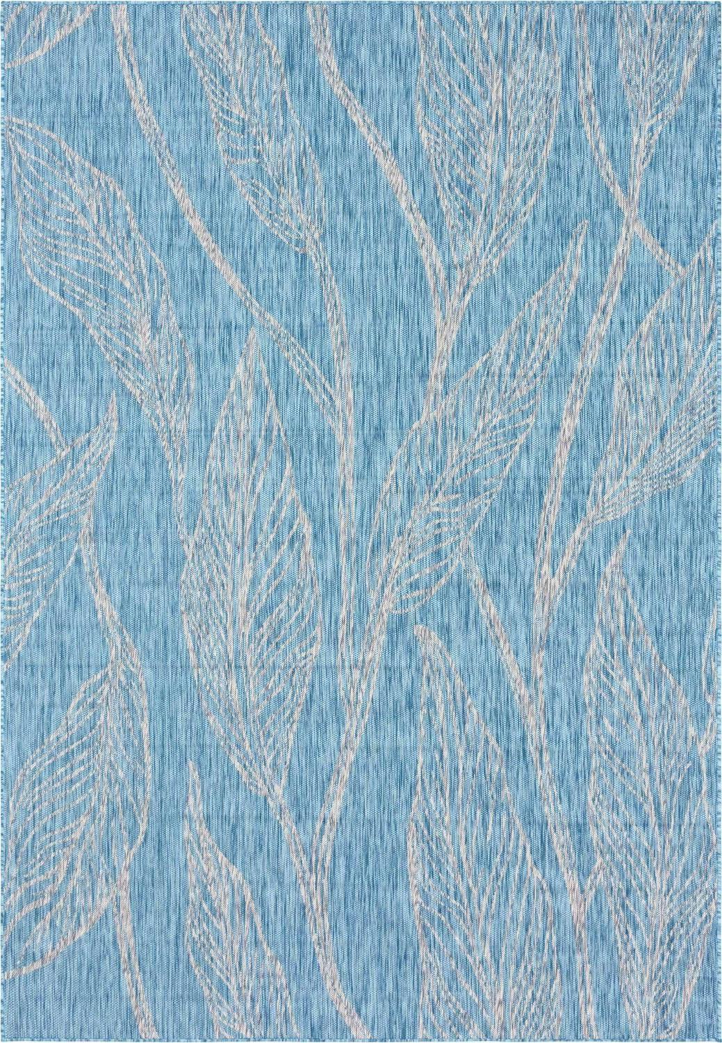 Unique Loom Leaf Indoor/Outdoor Botanical Rug Light Aqua/Ivory 8′ x 11′ 4 Rectangle Floral / Botanical Modern Perfect For Patio Deck Garage Entryway