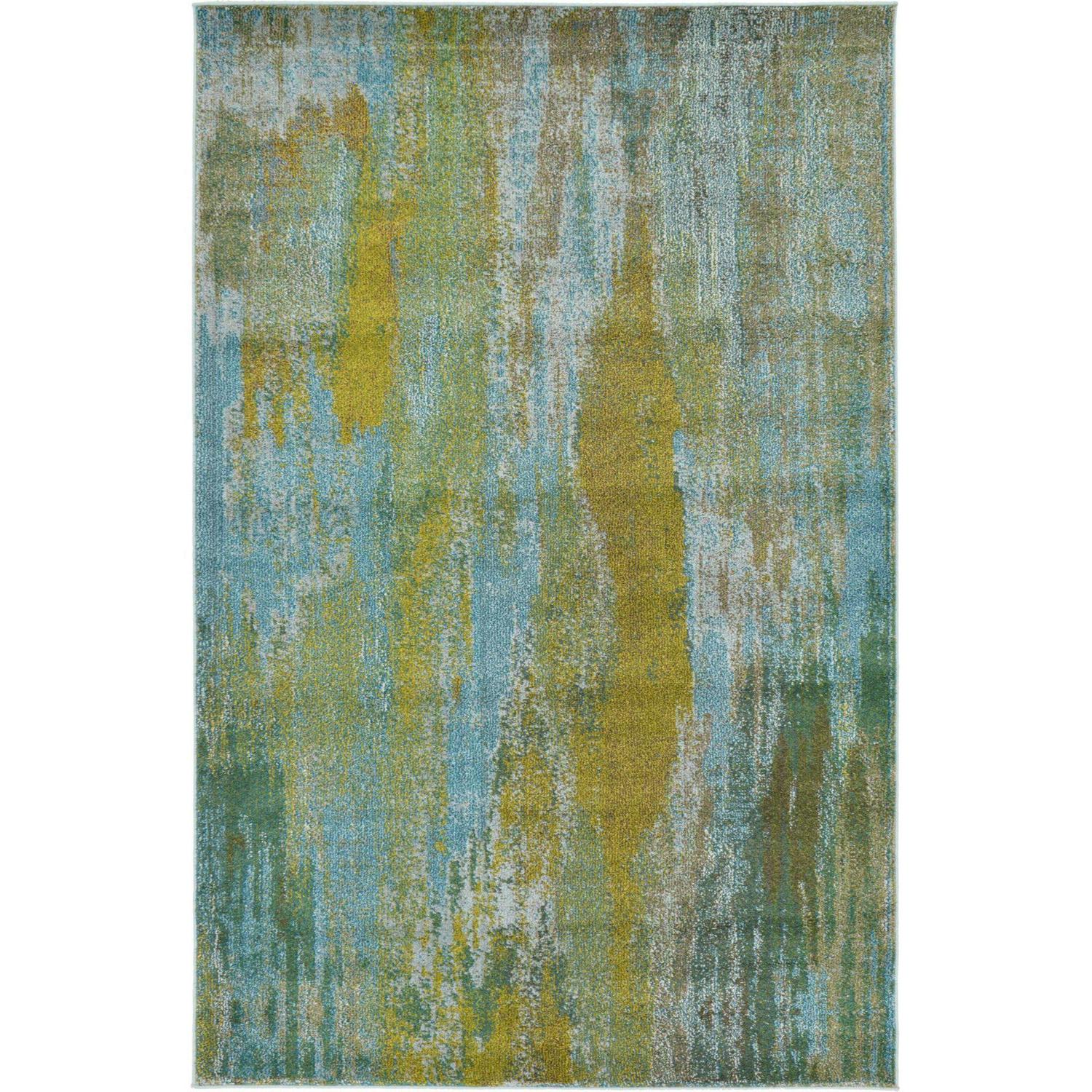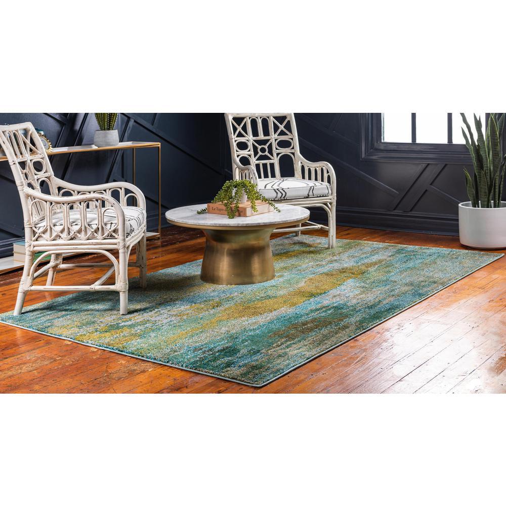 Unique Loom Lilly Jardin Rug Turquoise/Gray 5′ 1 x 8′ Rectangle Abstract Modern Perfect For Living Room Bed Room Dining Room Office