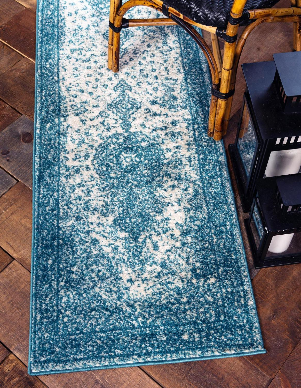 Unique Loom Midnight Bromley Rug Turquoise/Ivory 2′ x 8′ 8 Runner Medallion Shabby-Chic Perfect For Bathroom Hallway Mud Room Laundry Room