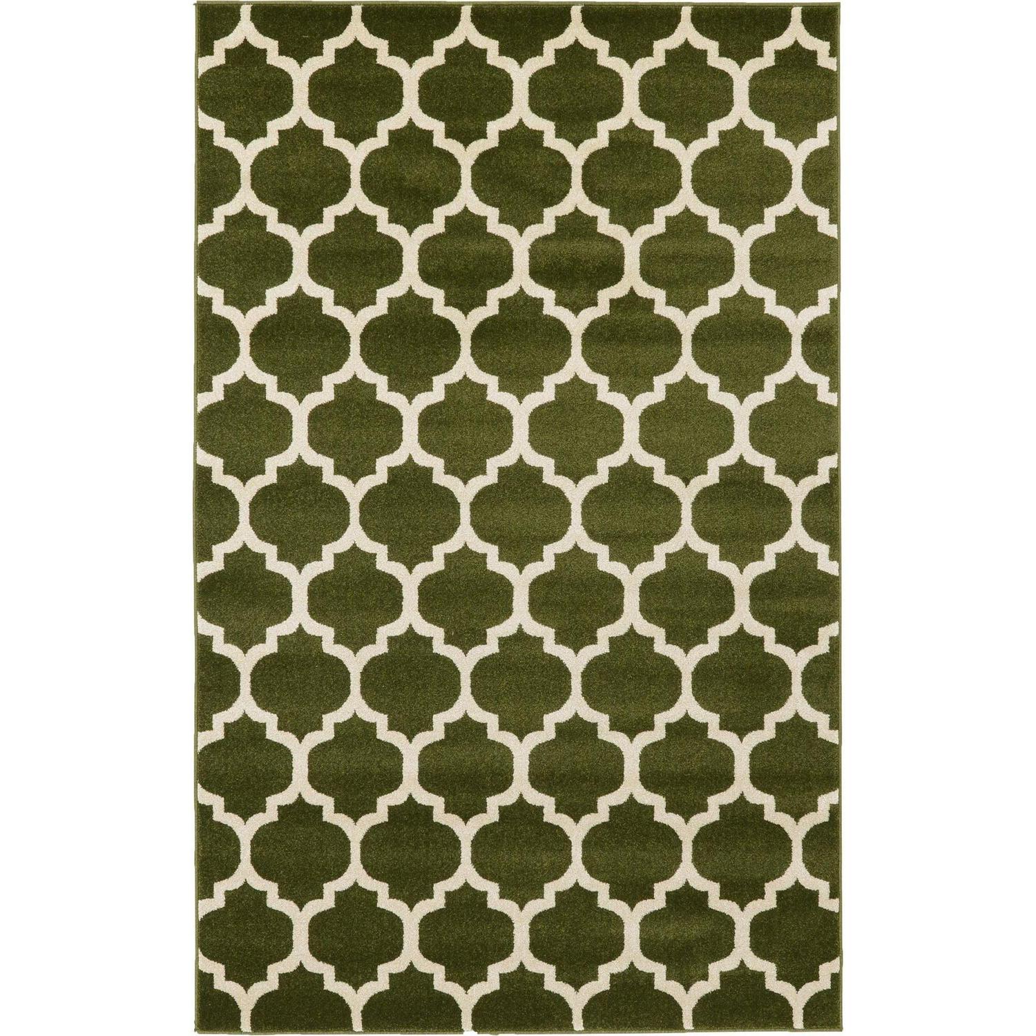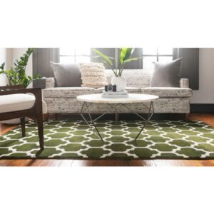 Unique Loom Philadelphia Trellis Rug Dark Green/Beige 5′ 1 x 8′ Rectangle Geometric Contemporary Perfect For Living Room Bed Room Dining Room Office